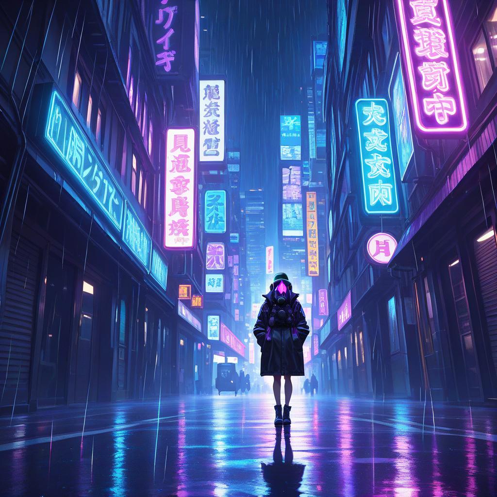 Girl in Neon Alley: Nighttime Encounter