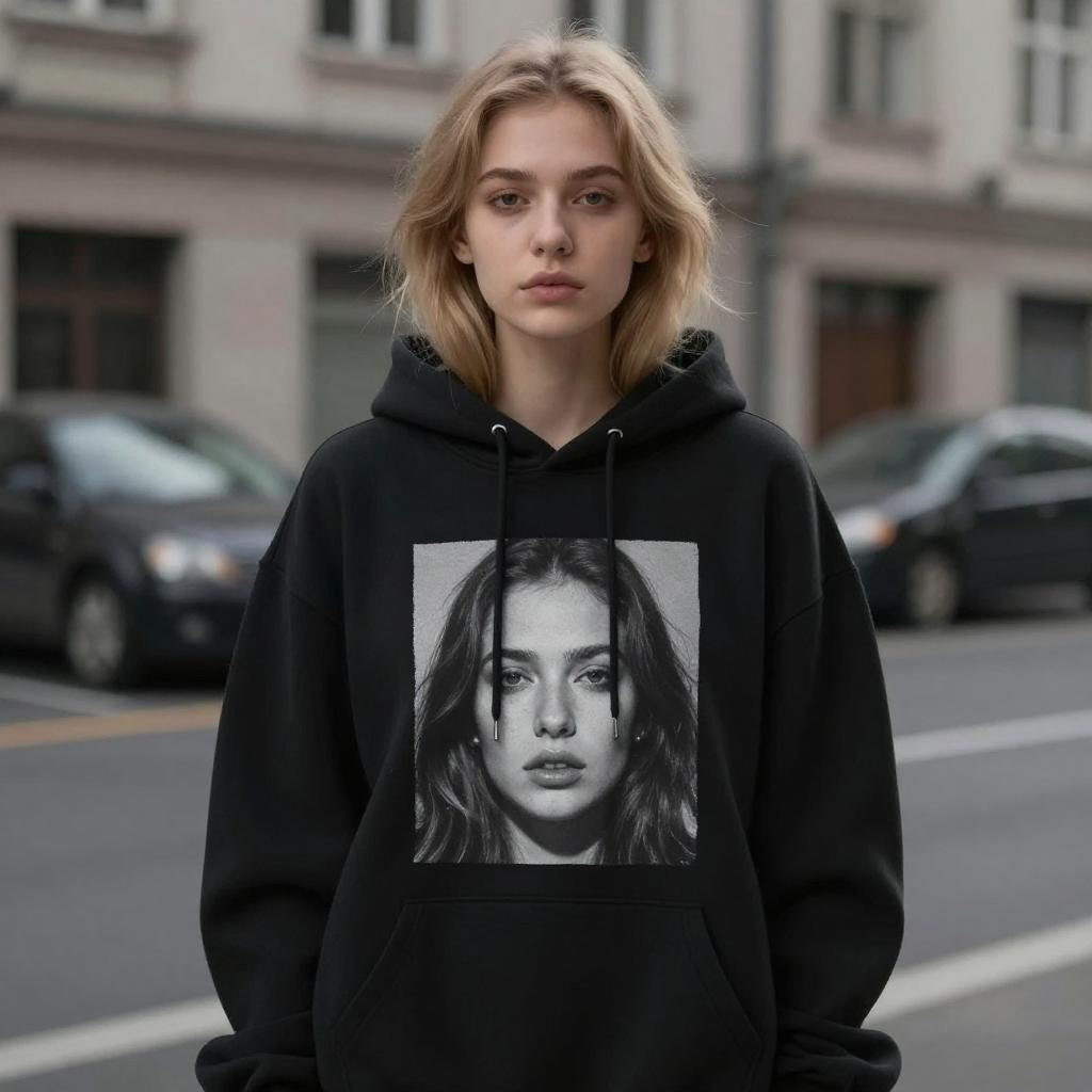Young Woman with Mona Lisa Hoodie