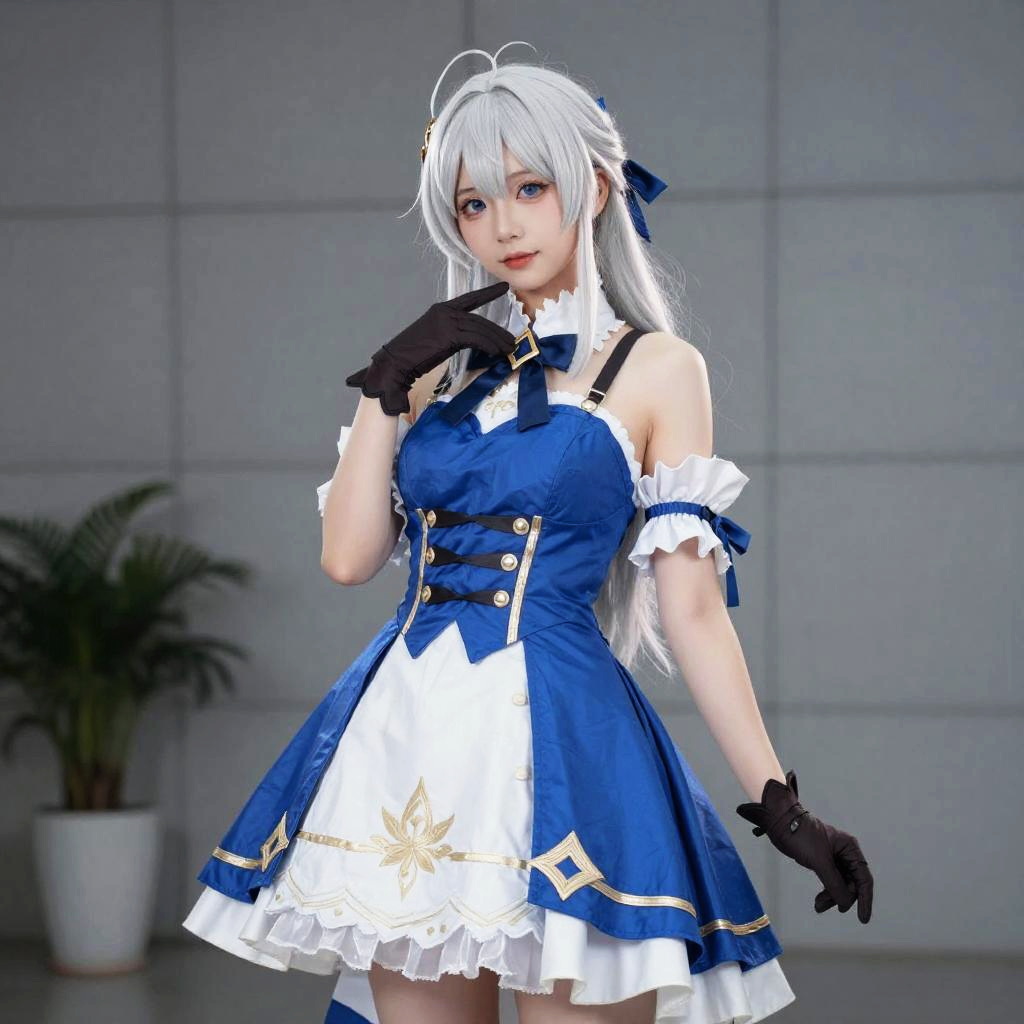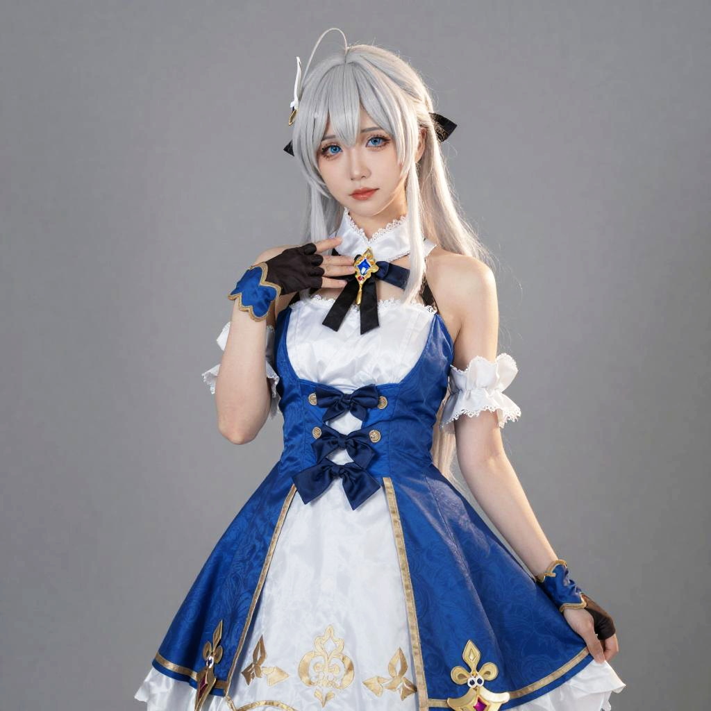 Azur Lane Bismarck Cosplay, image of a woman in a blue and white dress