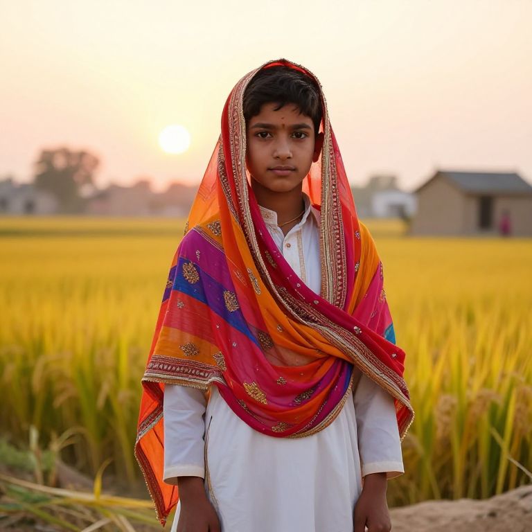 Punjabi boy reading a book under a banyan tree in a quiet village lane, traditional clothing, calm expression, detailed background with old walls and animals, peaceful vibe, realistic lighting, MidJourney style.