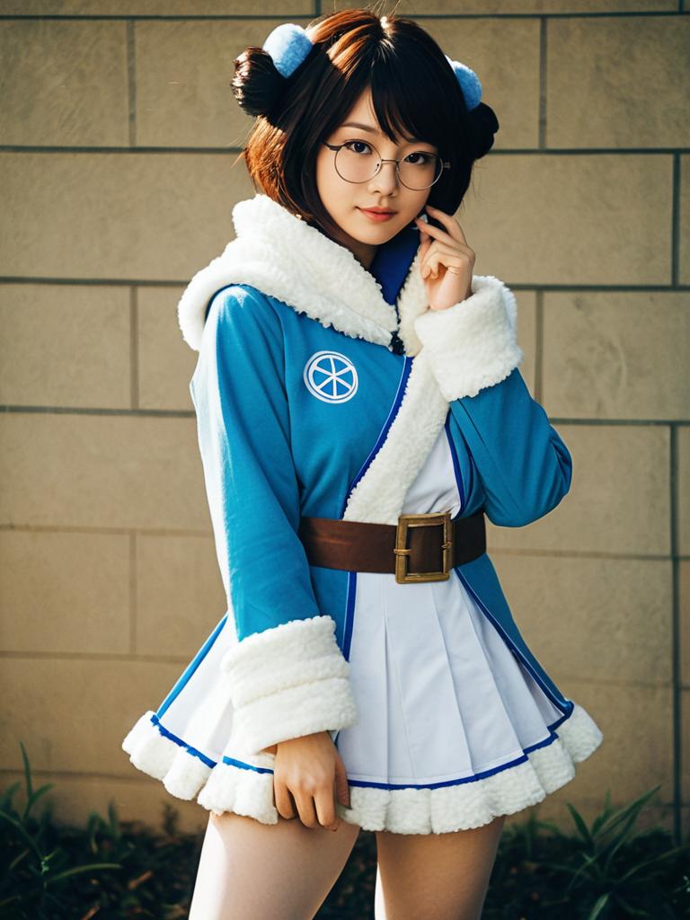 Sexy cosplay woman character wearing Mei Yoneme costume. Realistic photo. Jane Doe dressed as Mei Yoneme --sref 1390