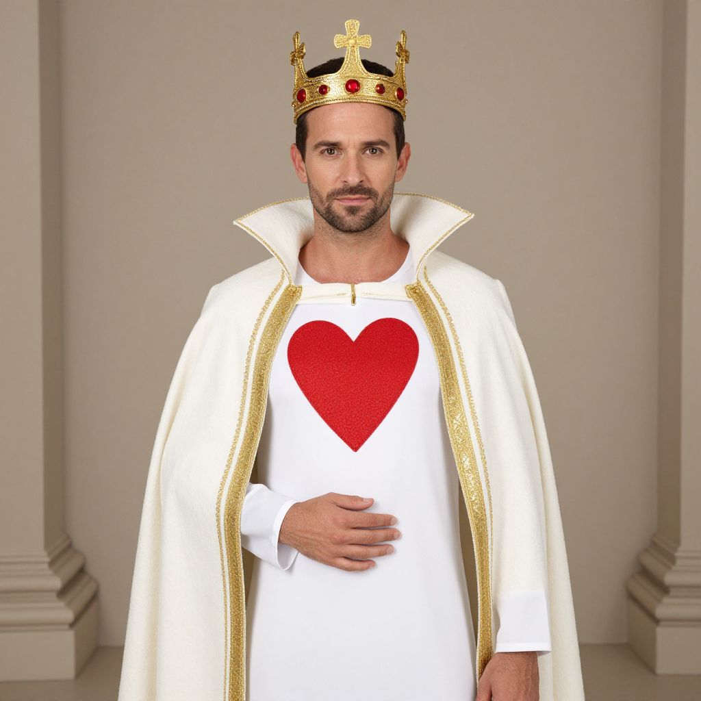 Premium King Hearts Costume Adult, man in a crown and mantle with a heart on his chest