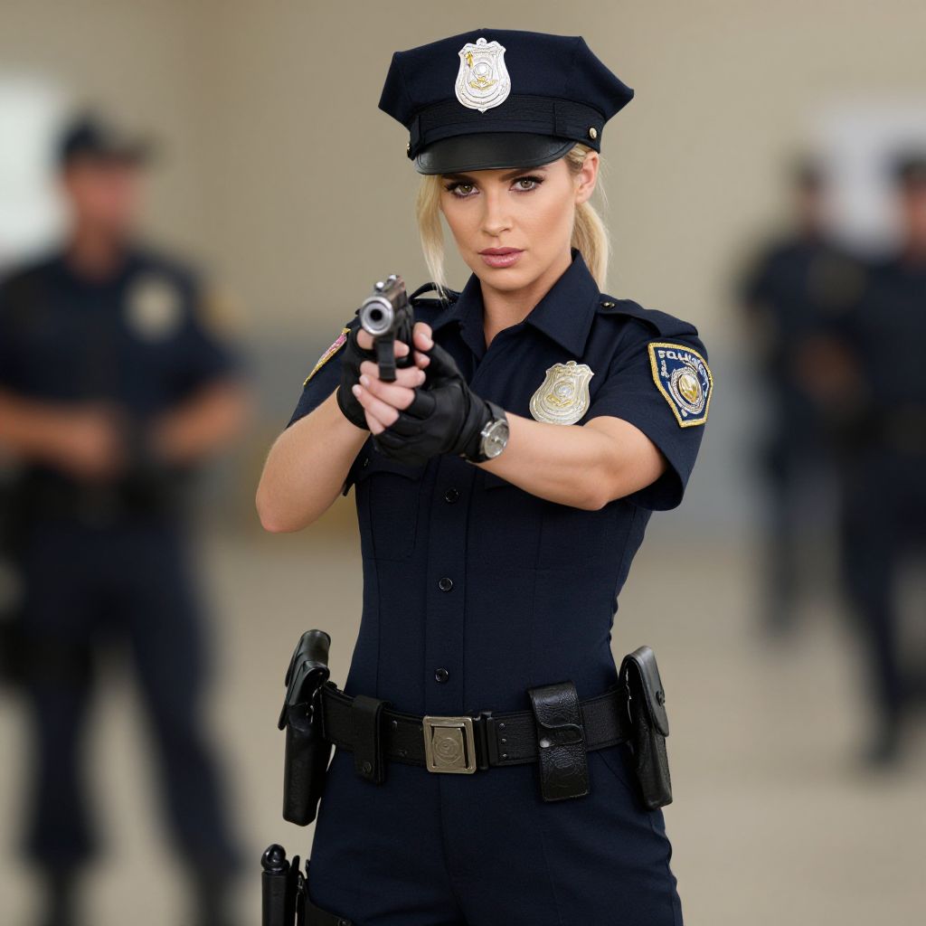 Blonde Woman in SWAT Police Uniform