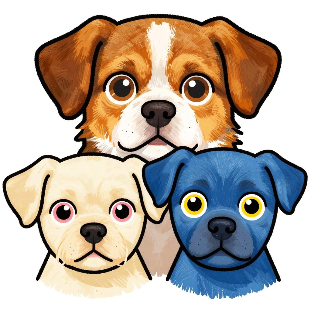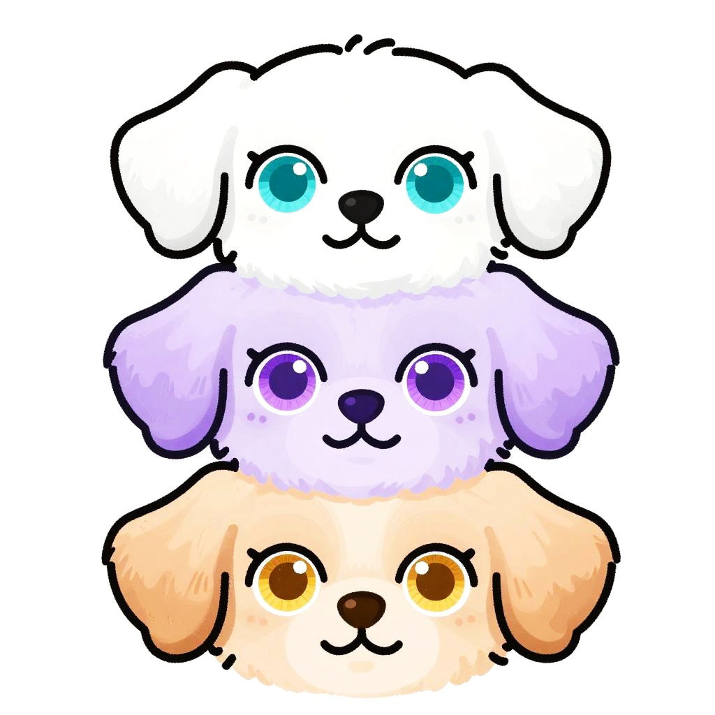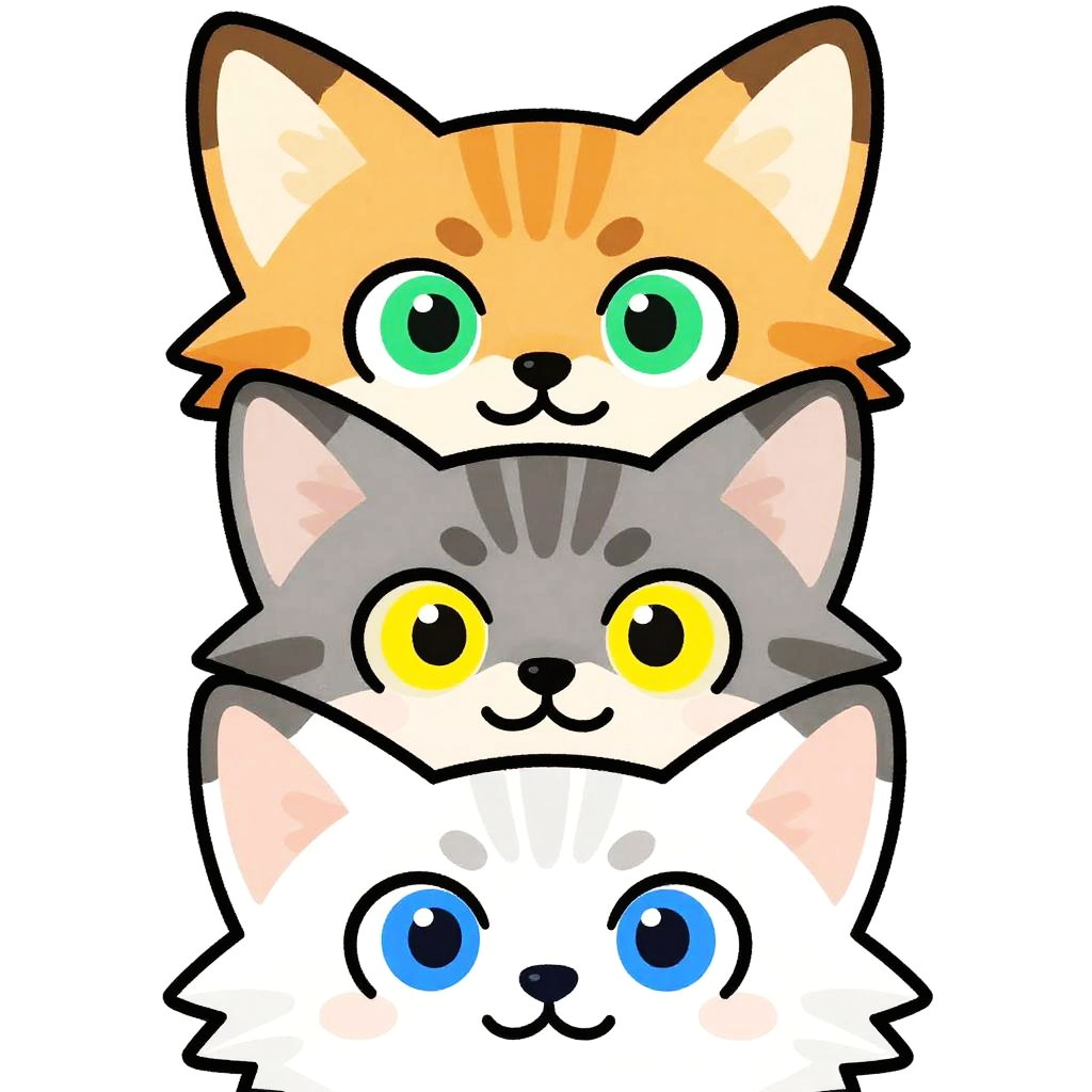 This digital drawing features three cartoon-style foxes with wide, expressive eyes. top red-orange with amber eyes / middle white with blue eyes / bottom grey with green eyes. They're closely grouped against a white background, each with exaggerated, whimsical facial expressions. The art style is playful and slightly abstract, with bold, thick lines and vibrant colors.
