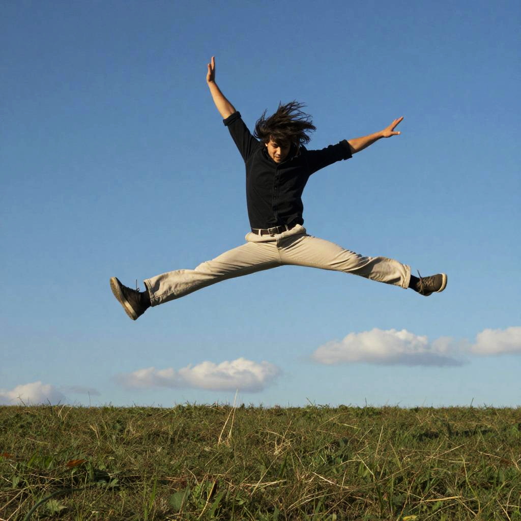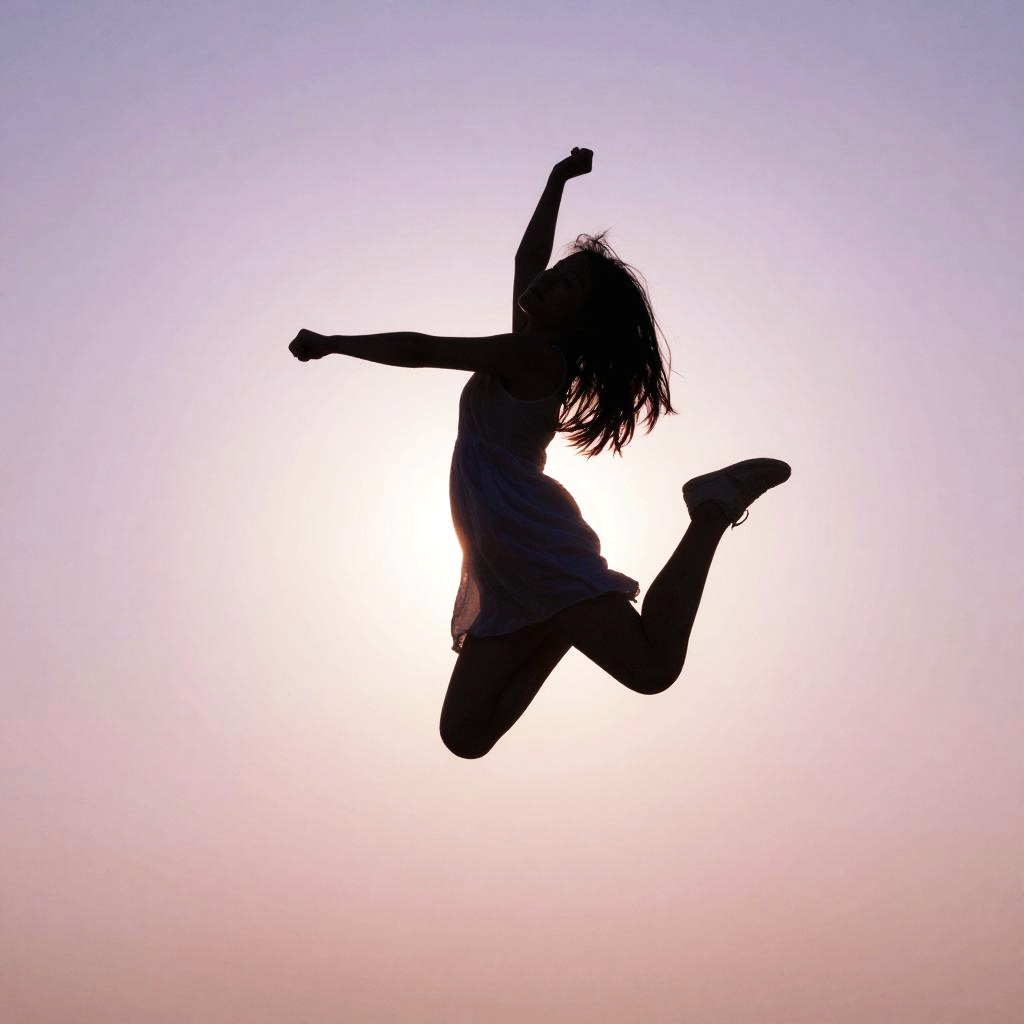 Silhouetted Figure Falling Against Sky
