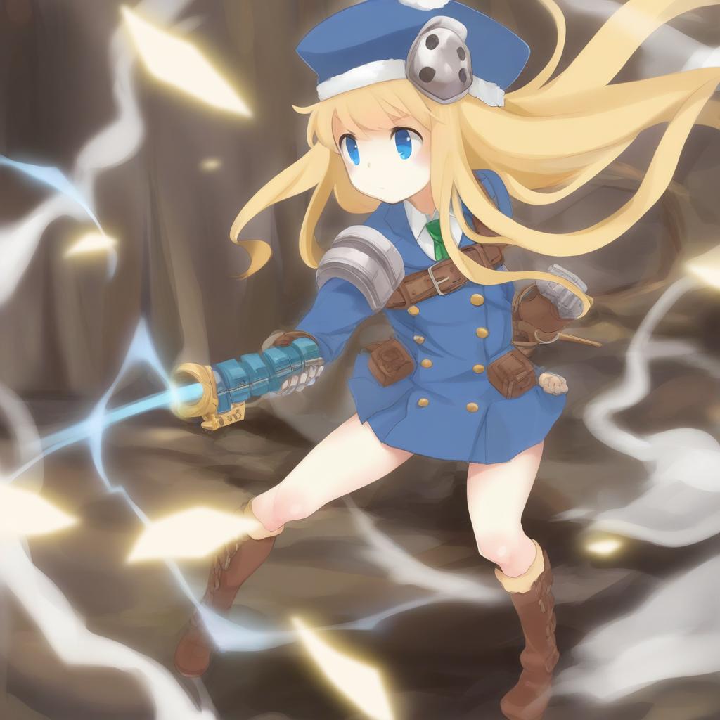 Gunner 2 (sekaiju), sekaiju no meikyuu, 1girl, blue eyes, blonde hair, long hair, hat, by artist djheycha, leet