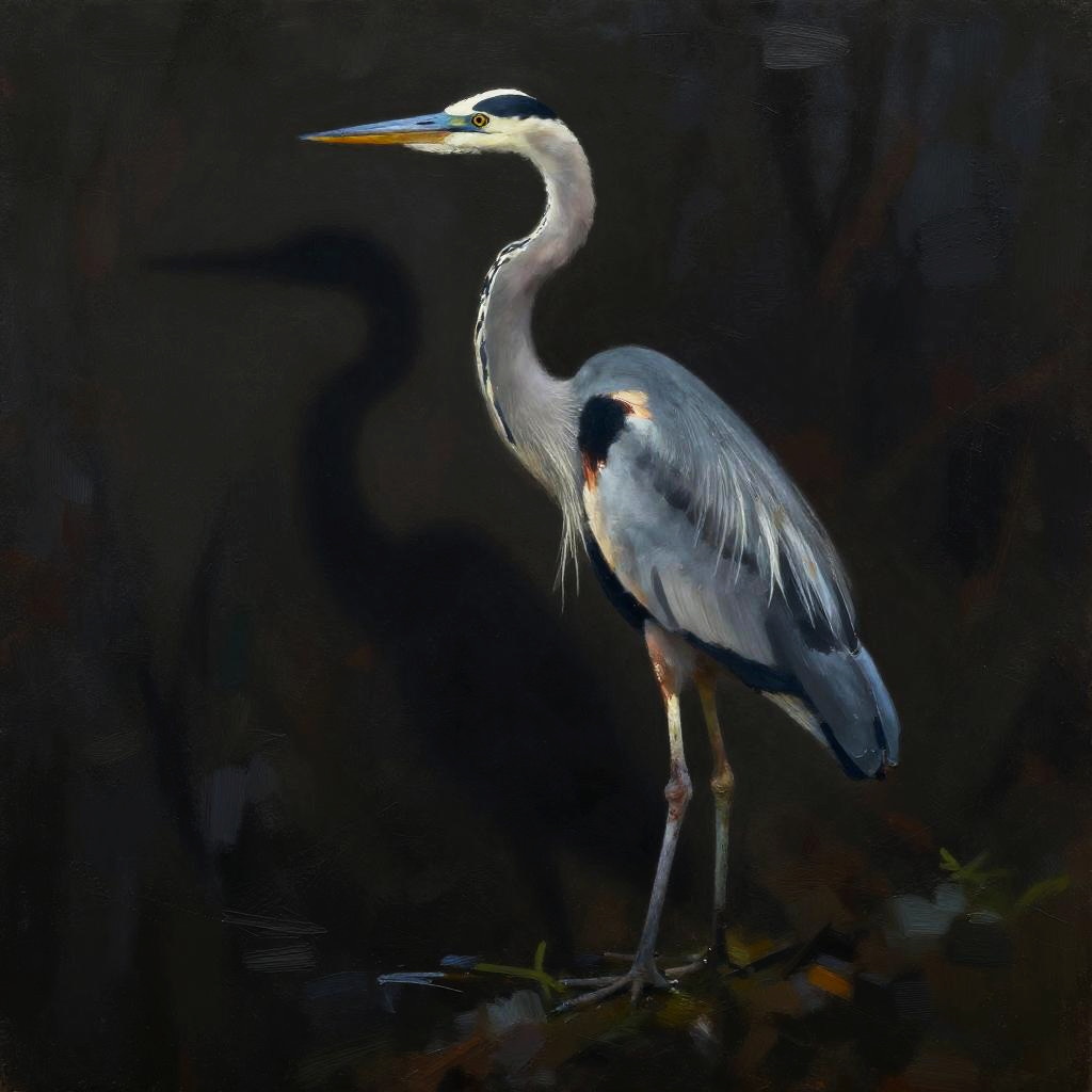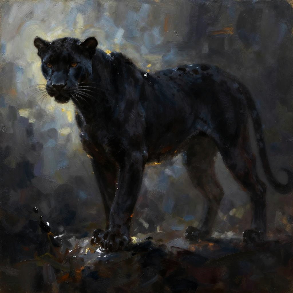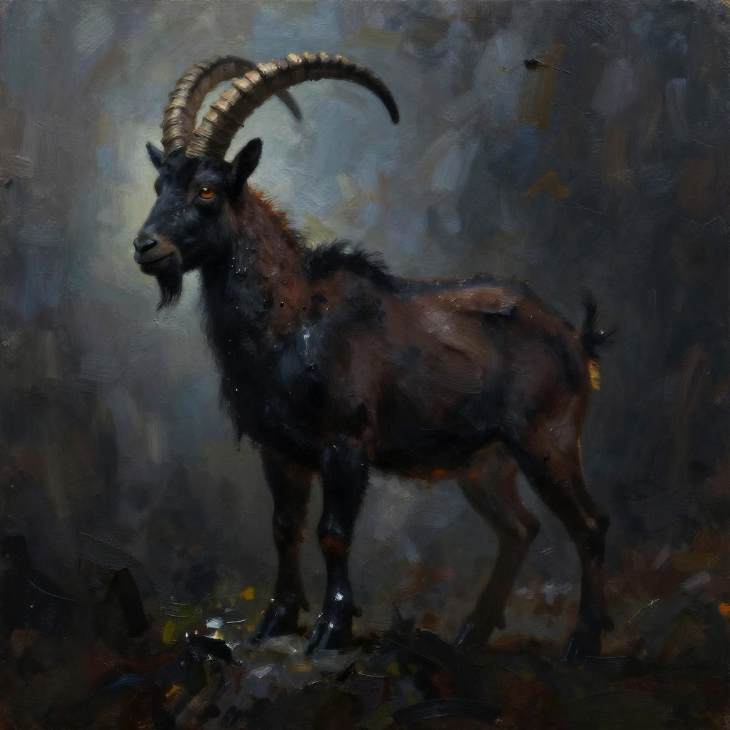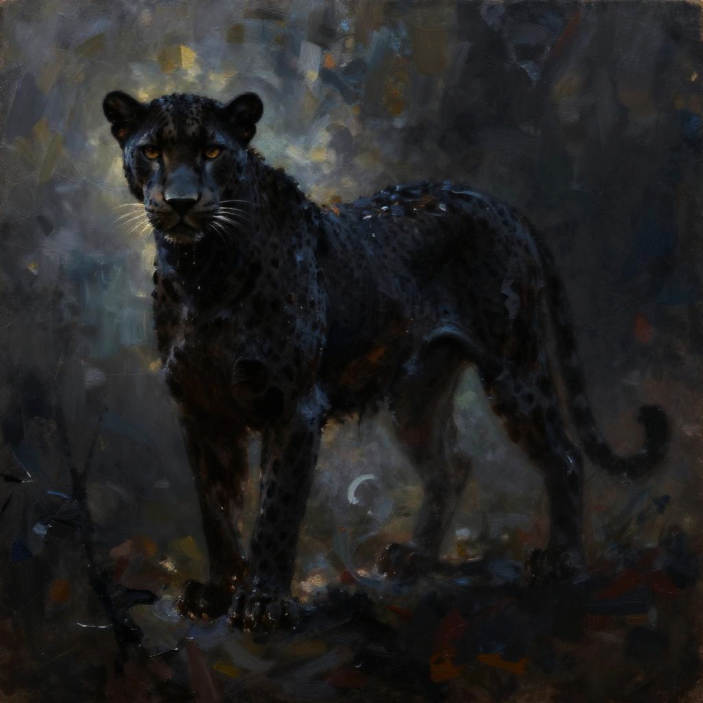 Painterly, shadow play, a majestic stag as a silhouette in darkness, slender body covered in oily substance, rim light, mysterious atmosphere, dreamy, detailed, hybrid art, oil painting, pen painting, ink painting, visible brush strokes, impasto, queen of nature