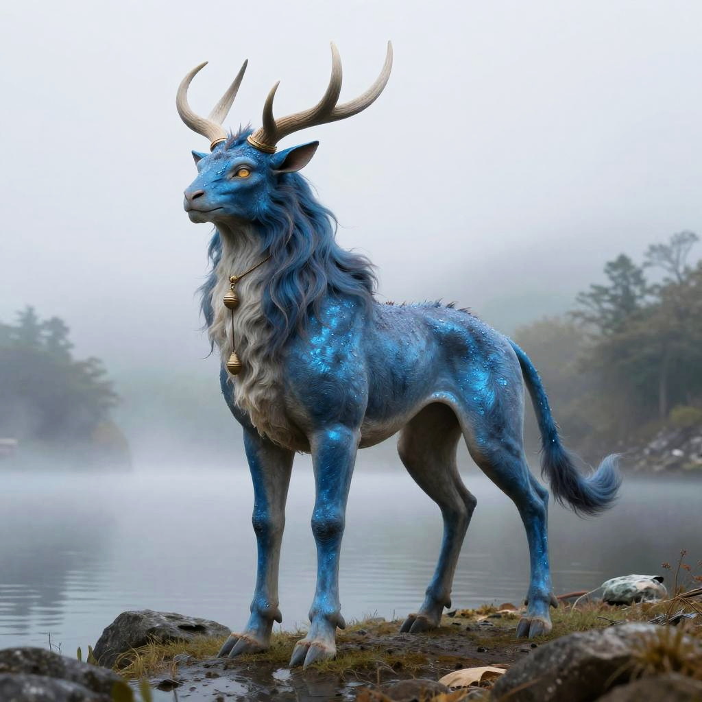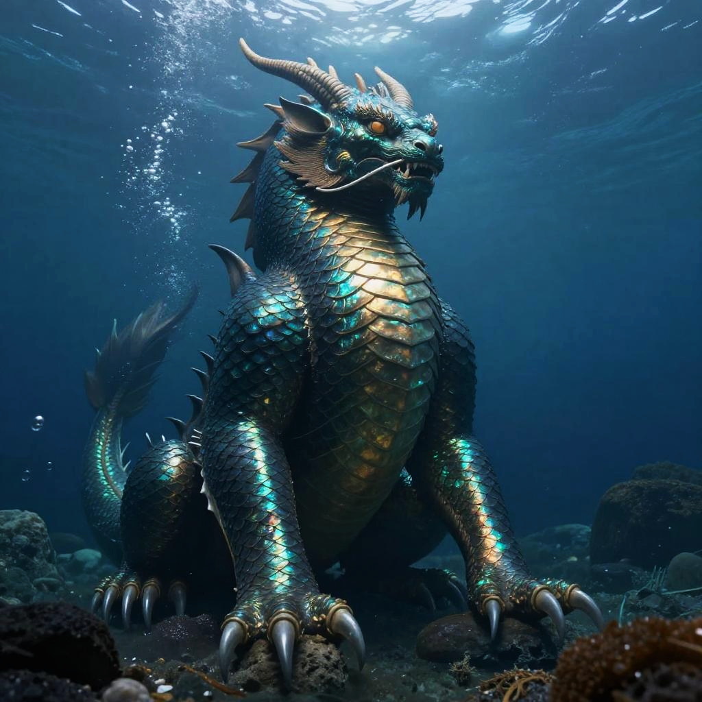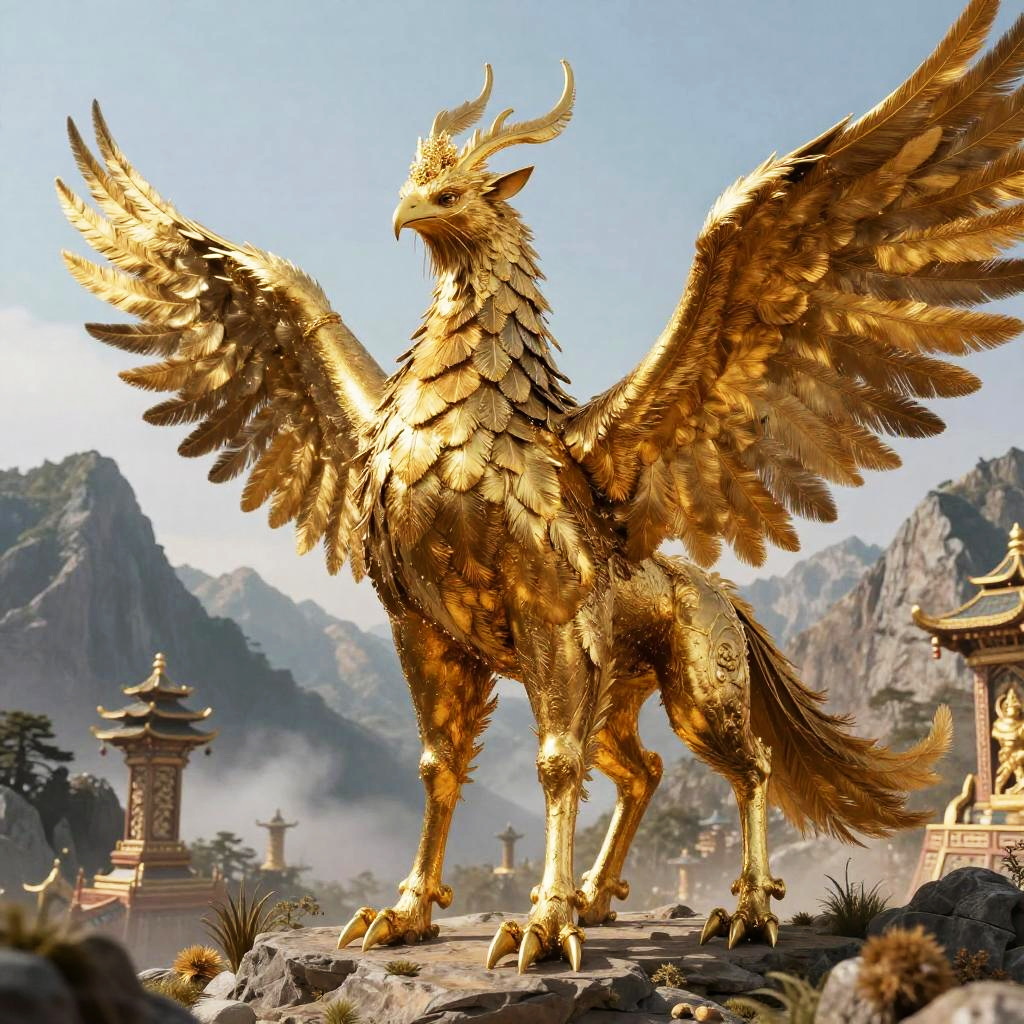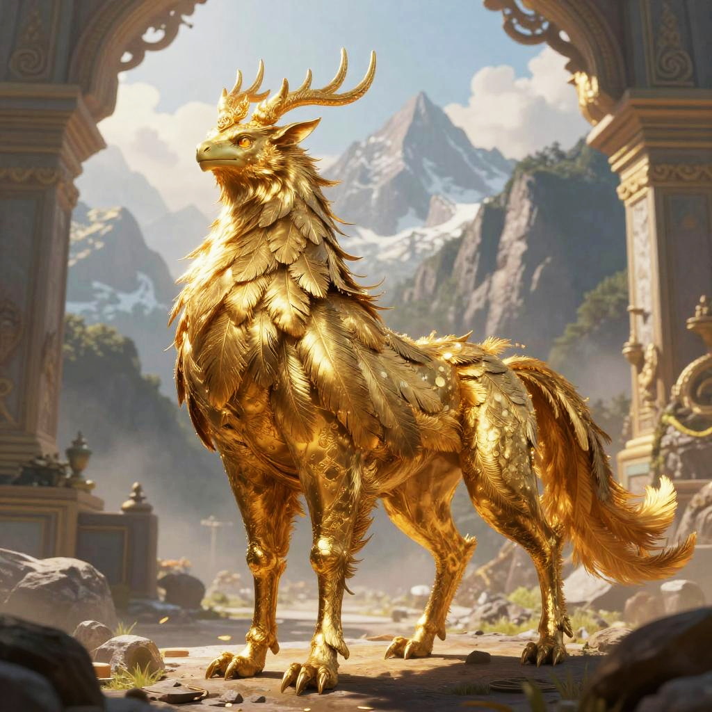 Ammit, legendary Egyptian creature, full body, golden scales, standing in a desert oasis, in the style of James Stokoe, mythical and majestic