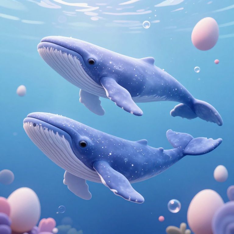 A serene underwater scene rendered in a soft, pastel-toned 3D art style features ethereal sky-whales with velvety textures, surrounded by floating eggs and gentle bubbles, evoking a dreamlike, otherworldly ambiance.