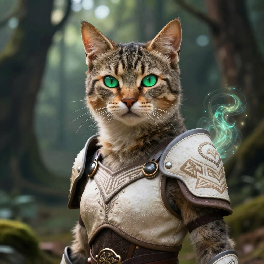 Graceful Feline Warrior in Mystic Forest