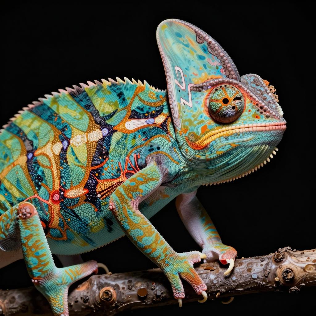 Close-up of Chameleon in Ukiyo-e Style