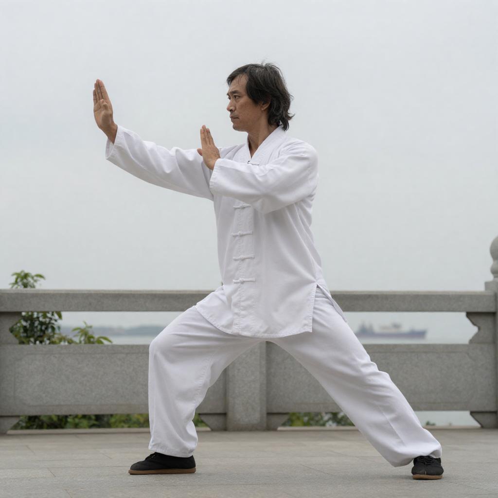 Outdoor Martial Arts Training Kick Scene