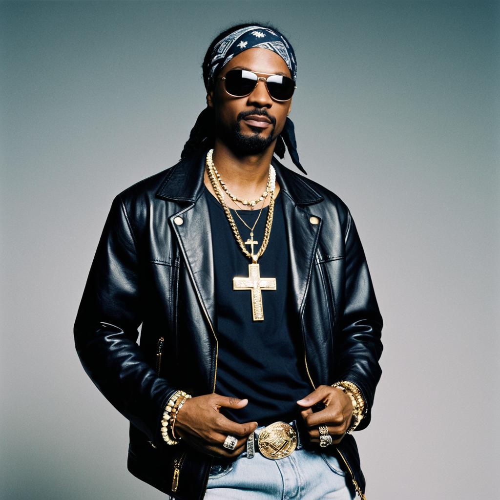 Man in Run DMC Costume, full-body cosplay photo with gold chain and hat