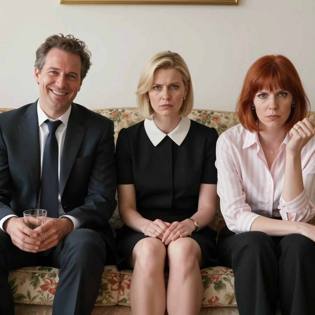 Elegant Trio in a Red Leather Booth