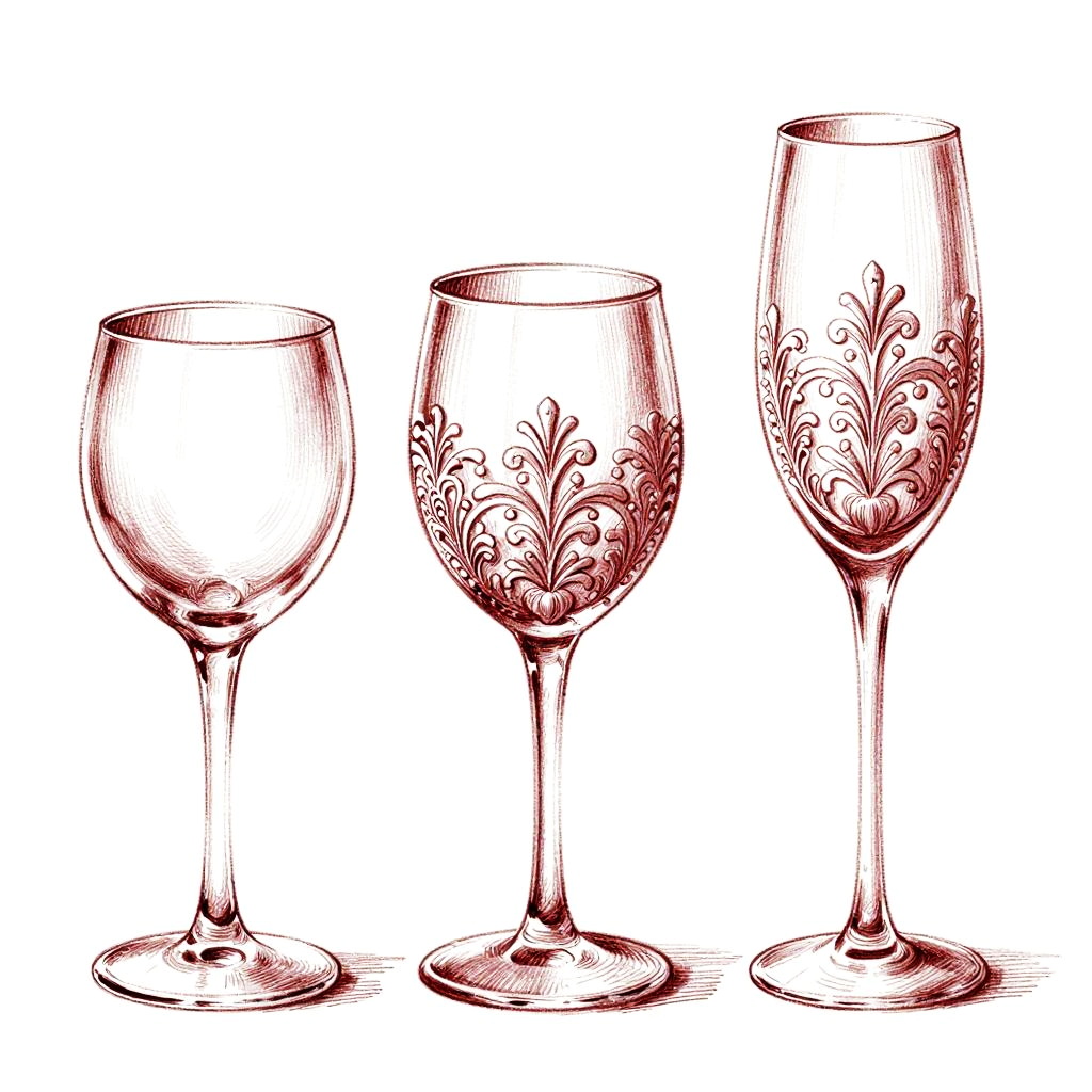 Elegant Red Wine Glass Sketches