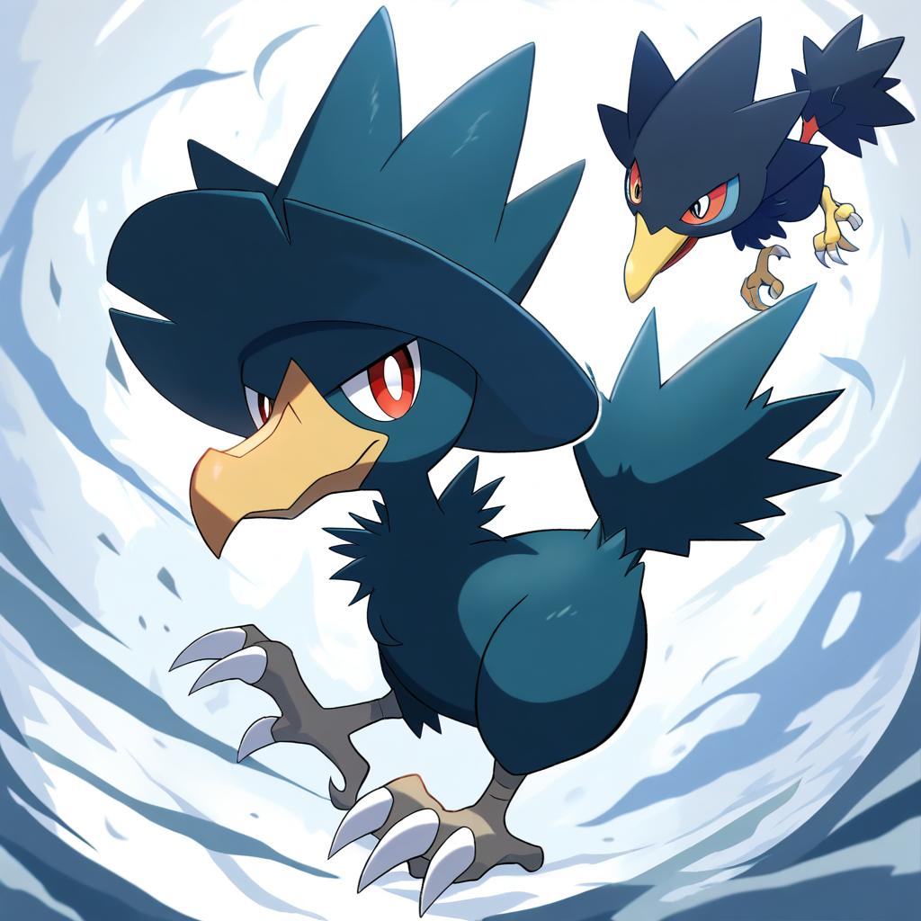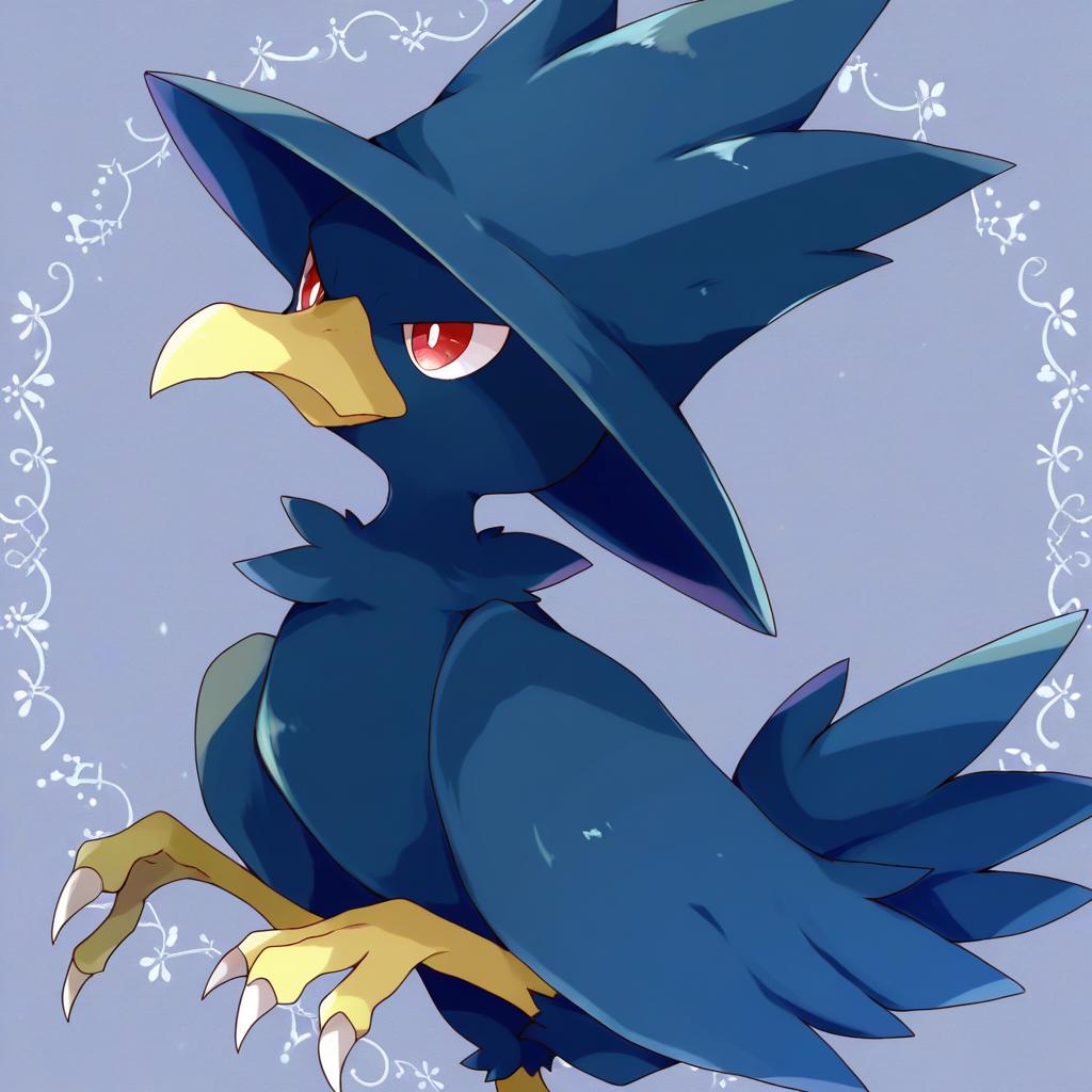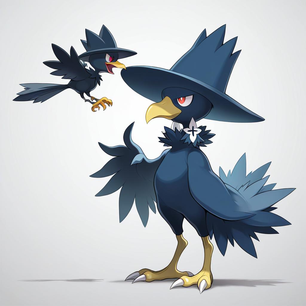 Illustration of Murkrow, pokemon in the style of Ebizome