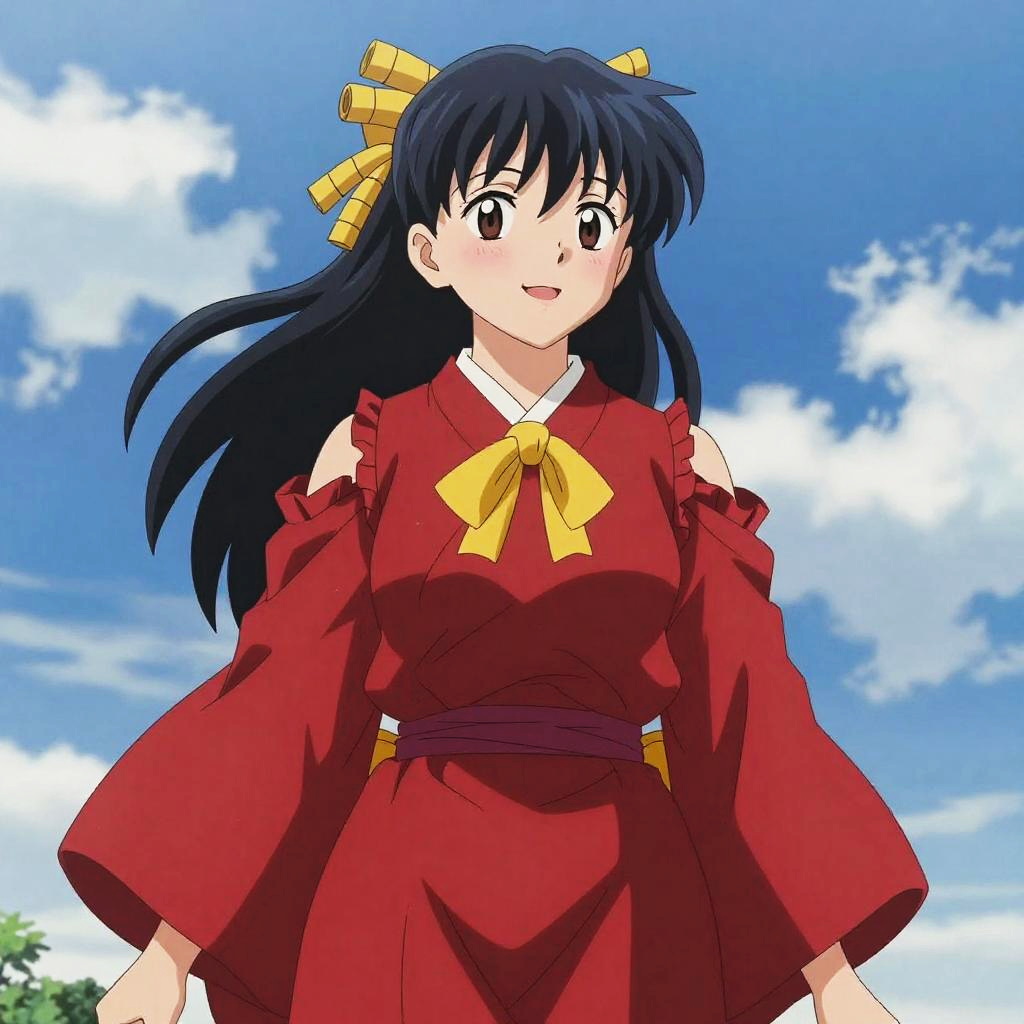 Anime Woman in Blue Kimono with Autumn Leaves