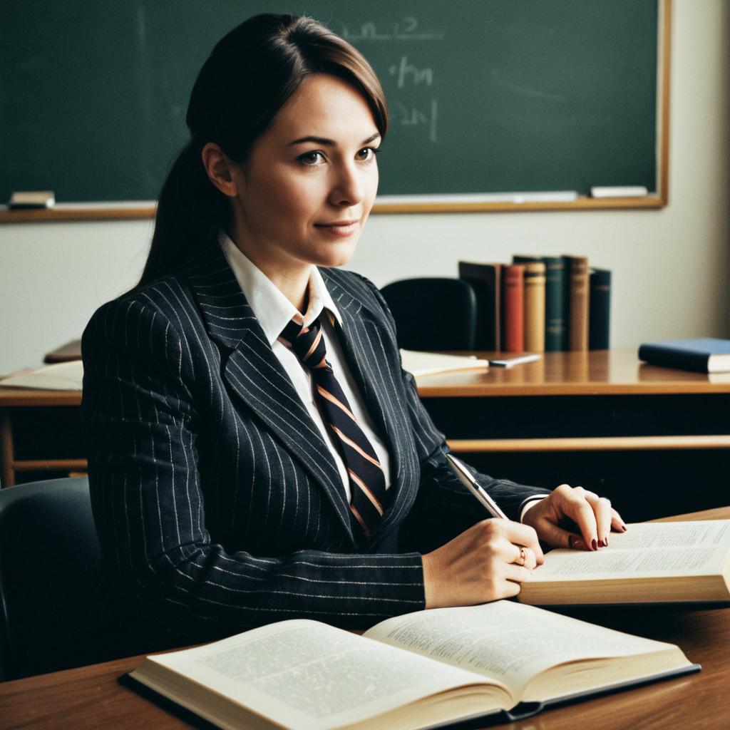 Formal Shirts And Blouses, woman with red hair and blue shirt standing in a classroom