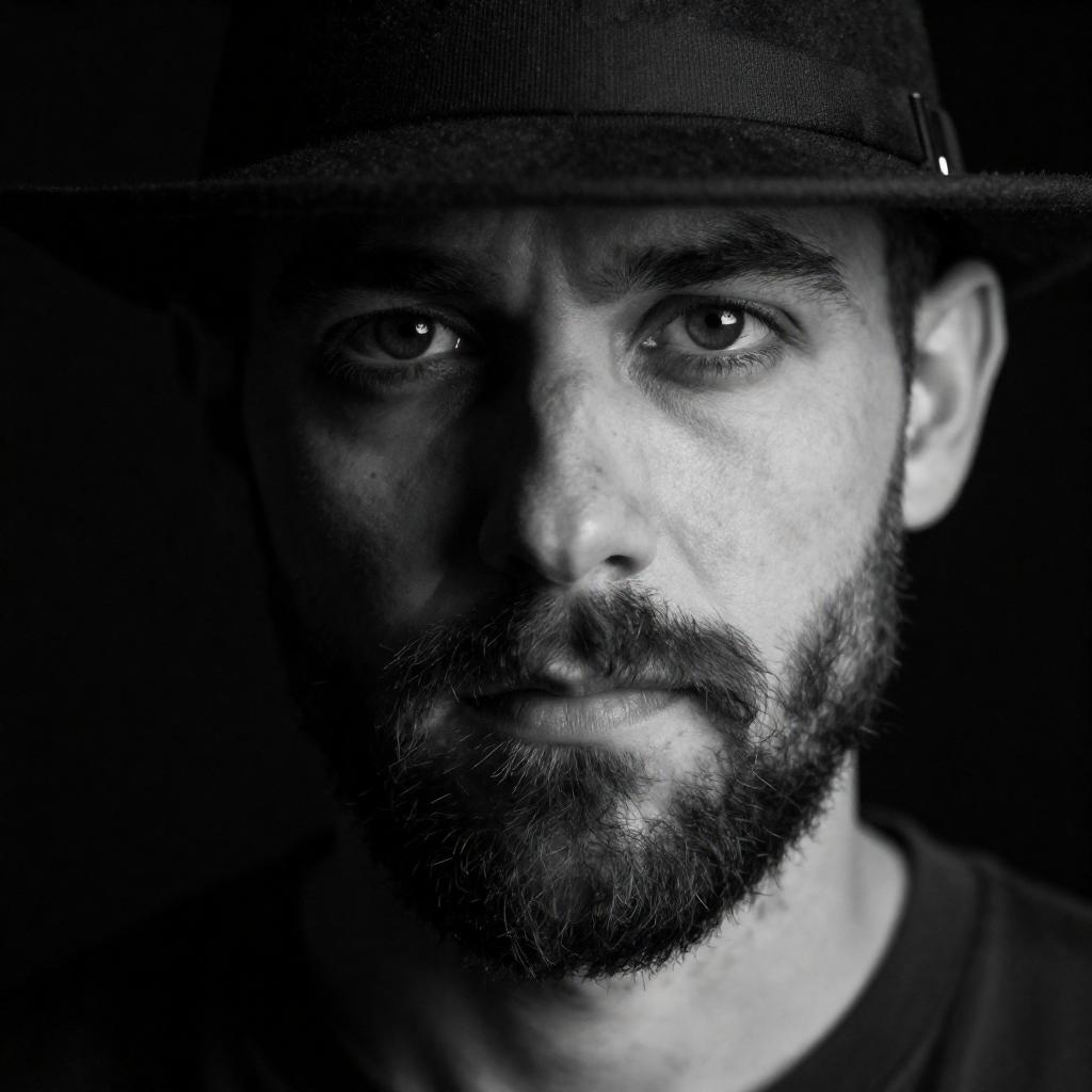 Dramatic Black-and-White Eyepatch Portrait of a Man