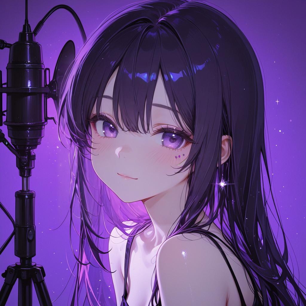 Pure purple background, Studio light, Studio, 1girl, solo, upper body, Soft skin, skin texture, looking at viewer, smile, Glitter makeup