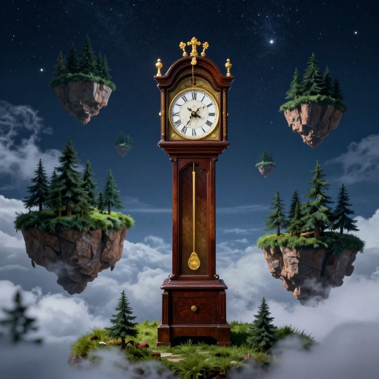 Majestic Grandfather Clock Among Floating Islands