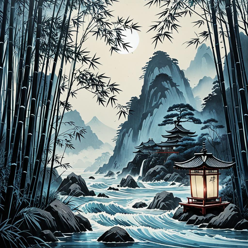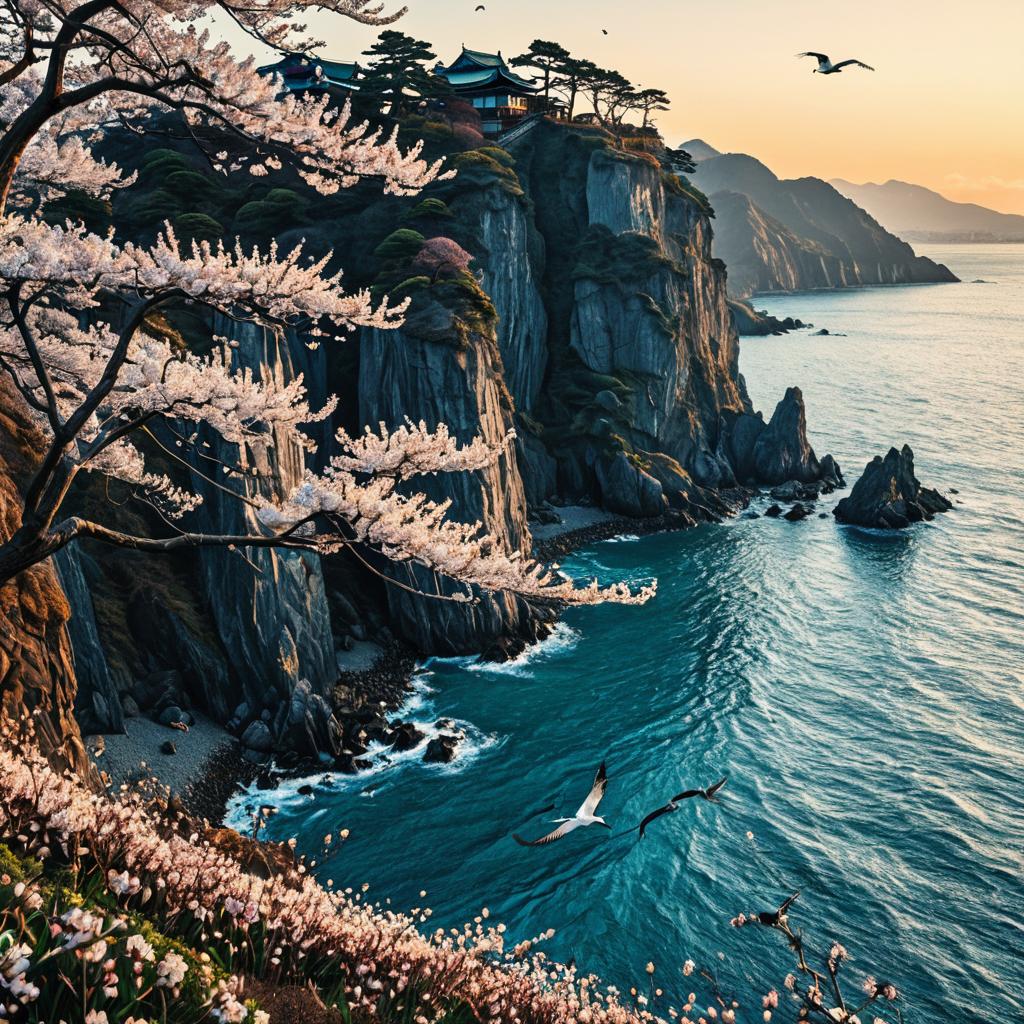 Serene temple garden at sunset with blooming lotus and painted koi fish, in stunning digital art rendered in detailed ukiyo-e painting style, overlaid with bingata florals in red, crimson, and saffron, traditional Japanese palette, dynamic composition, ultra-detailed, masterpiece, trending, award-winning, hdr, 4k, anamorphic widescreen