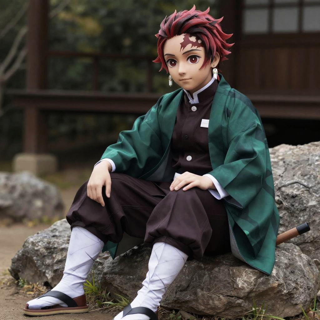 Kimetsu Yaiba Cosplay, asian man in a kimono sitting on a rock