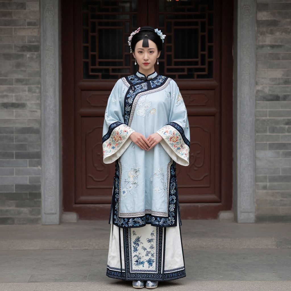 Traditional Woman Clothing Costume, woman in a traditional chinese dress standing in front of a building