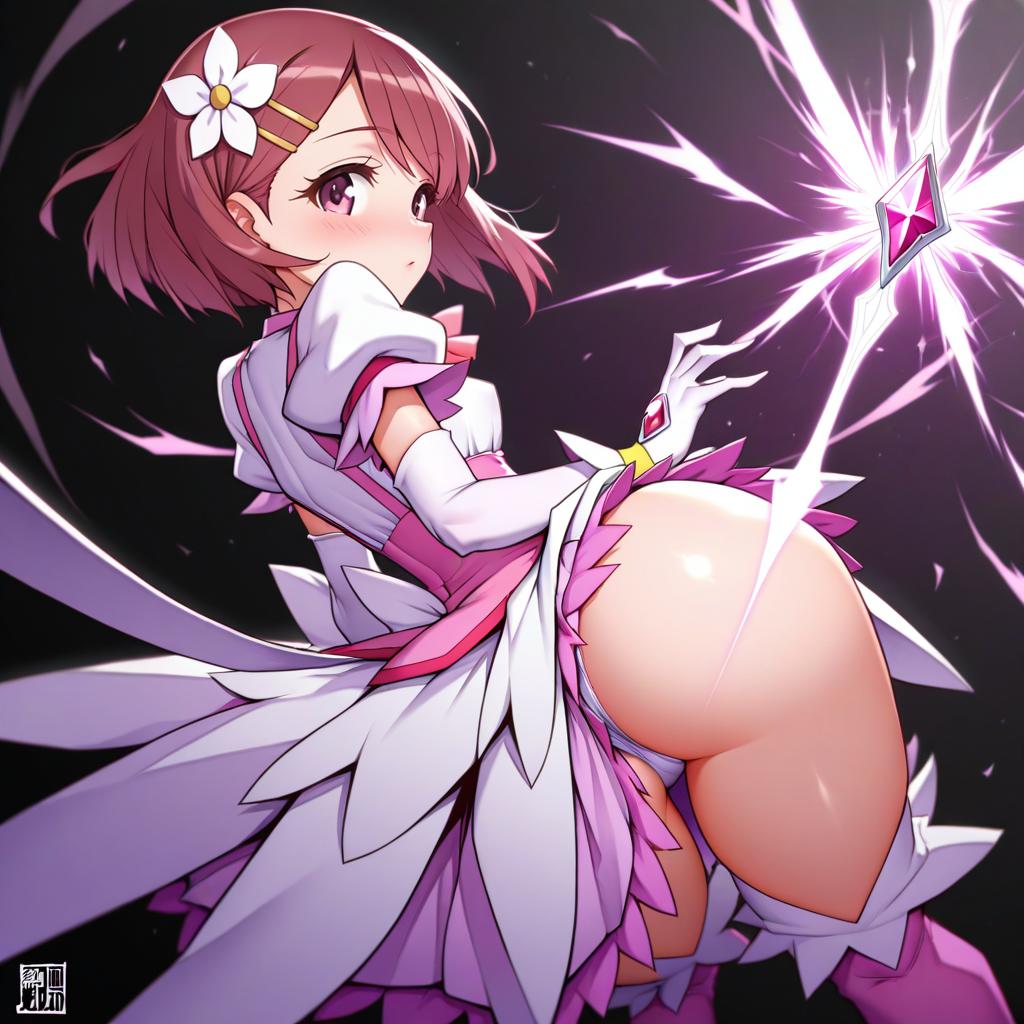 Hanadera nodoka, healin' good precure, 1girl, pink eyes, short hair, pink hair, brown hair, hair flower, hairclip, magical girl, magical girl, by artist jin (mugenjin), illustrious