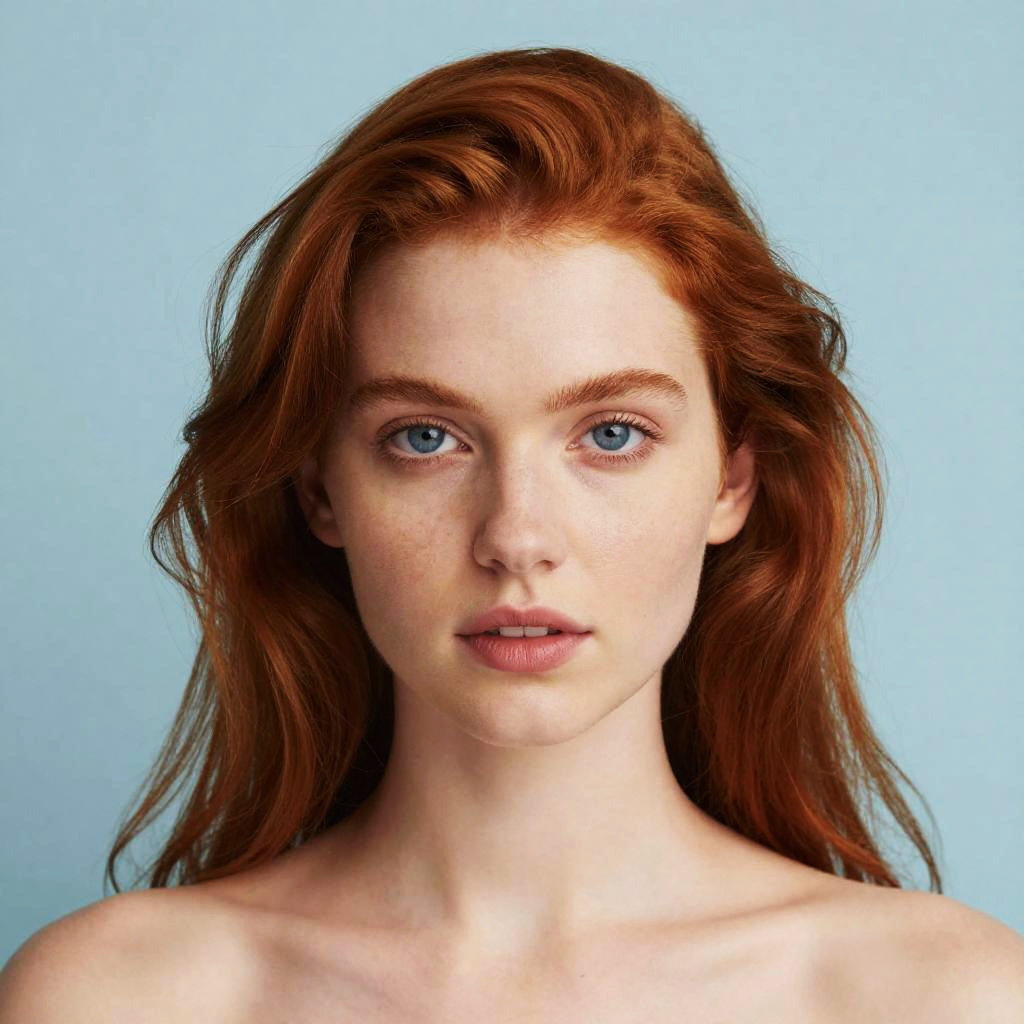 Young Woman with Red Hair in Blue Blouse