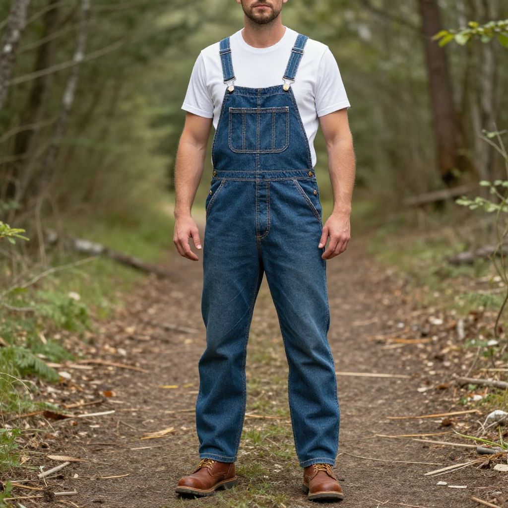 Rugged Man in Denim Overalls Outdoors
