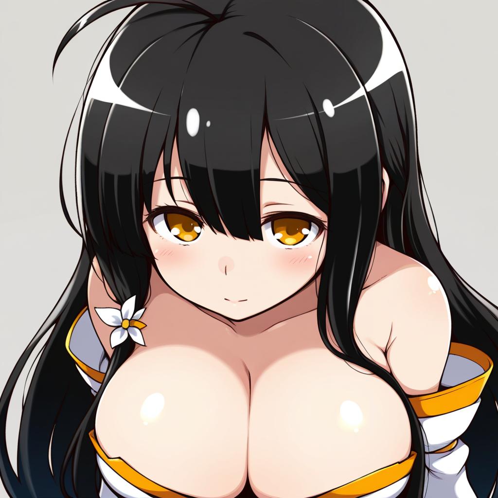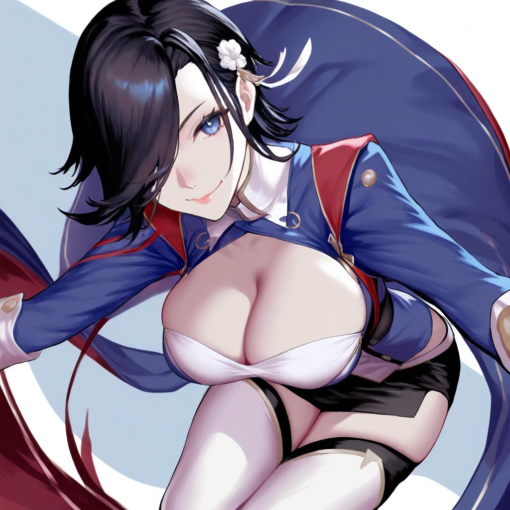 Ark royal (azur lane), azur lane, 1girl, blue eyes, hair over one eye, black hair, short hair, large breasts, cleavage, by artist yuki (popopo), leet