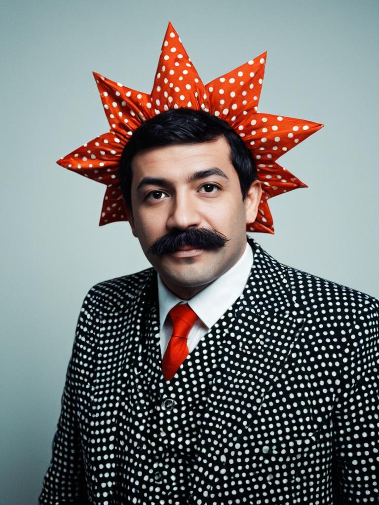 Person in Funny Fancy Dress Outfit, photorealistic detailed studio portrait