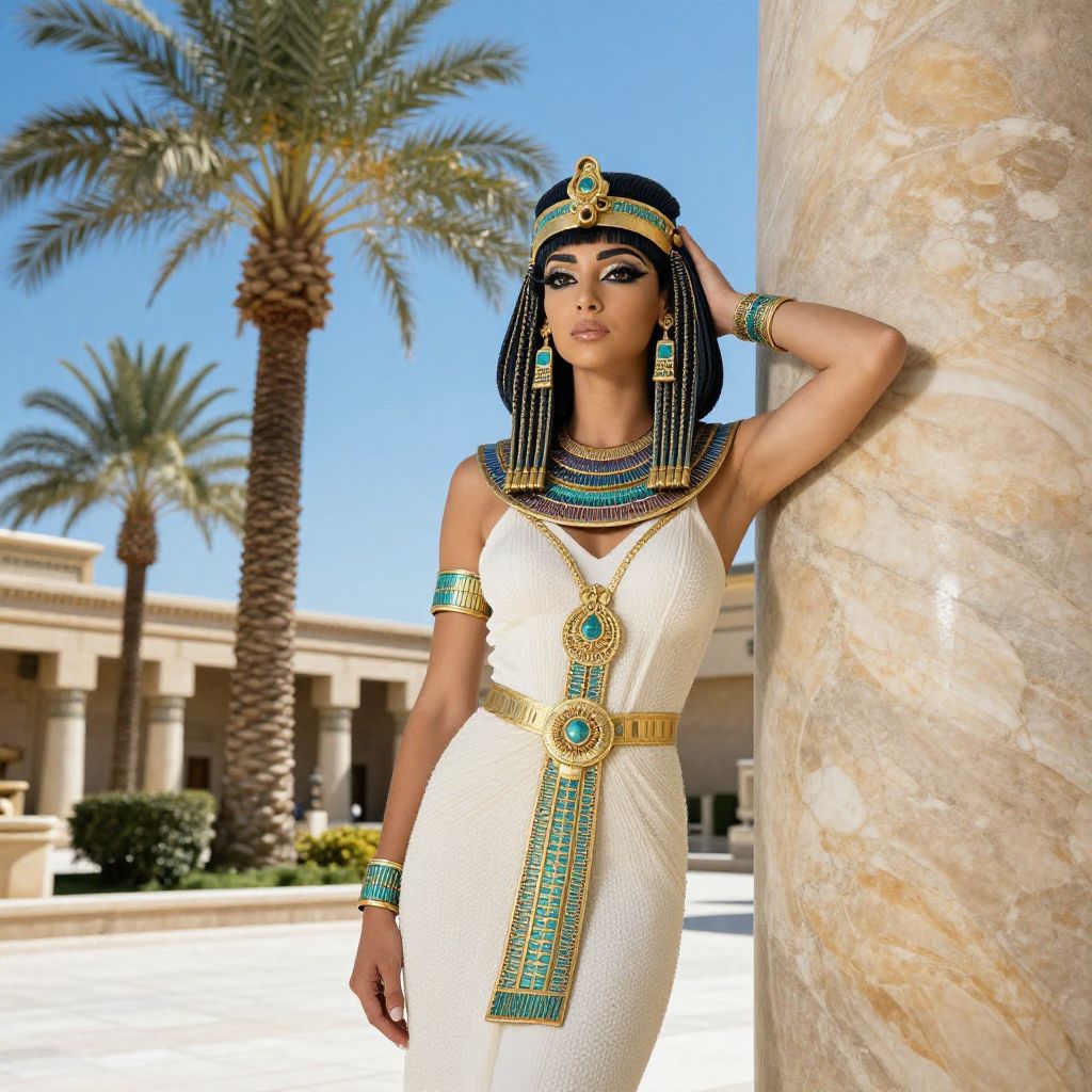 Elegant Cleopatra in Palace Courtyard