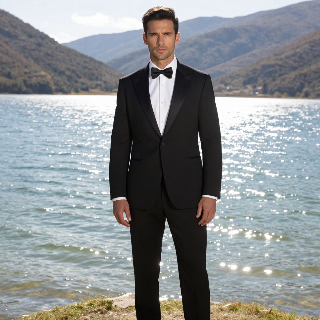 Handsome Man in Tuxedo by Mountain Lake