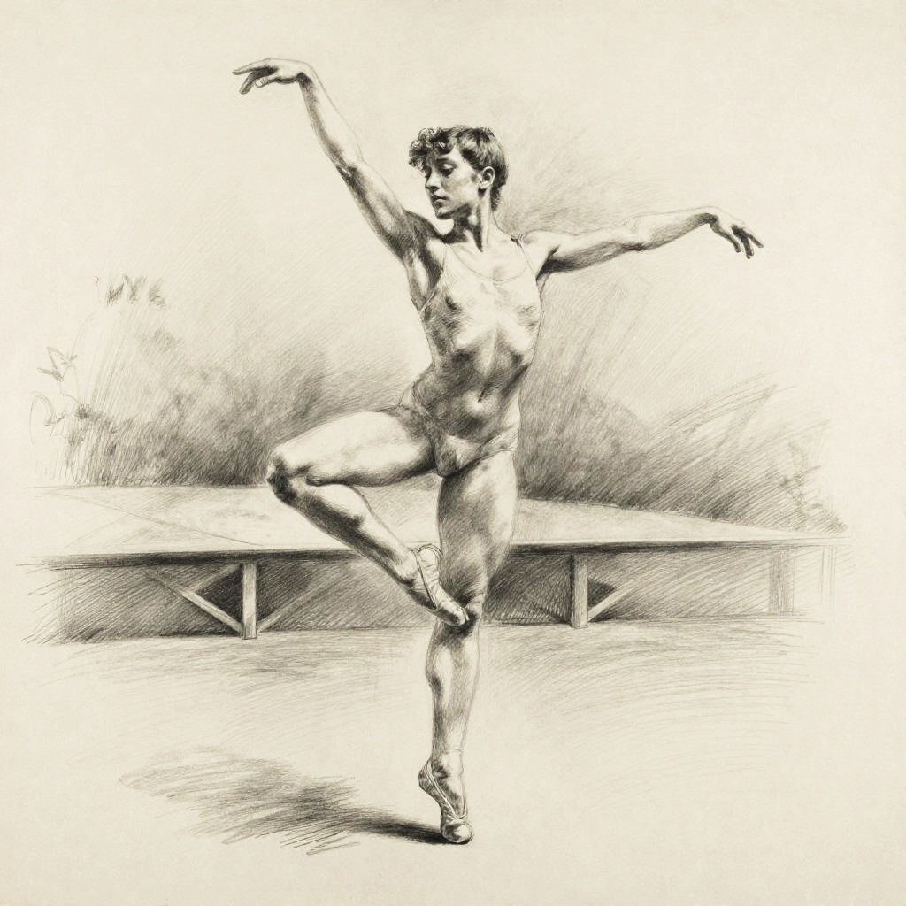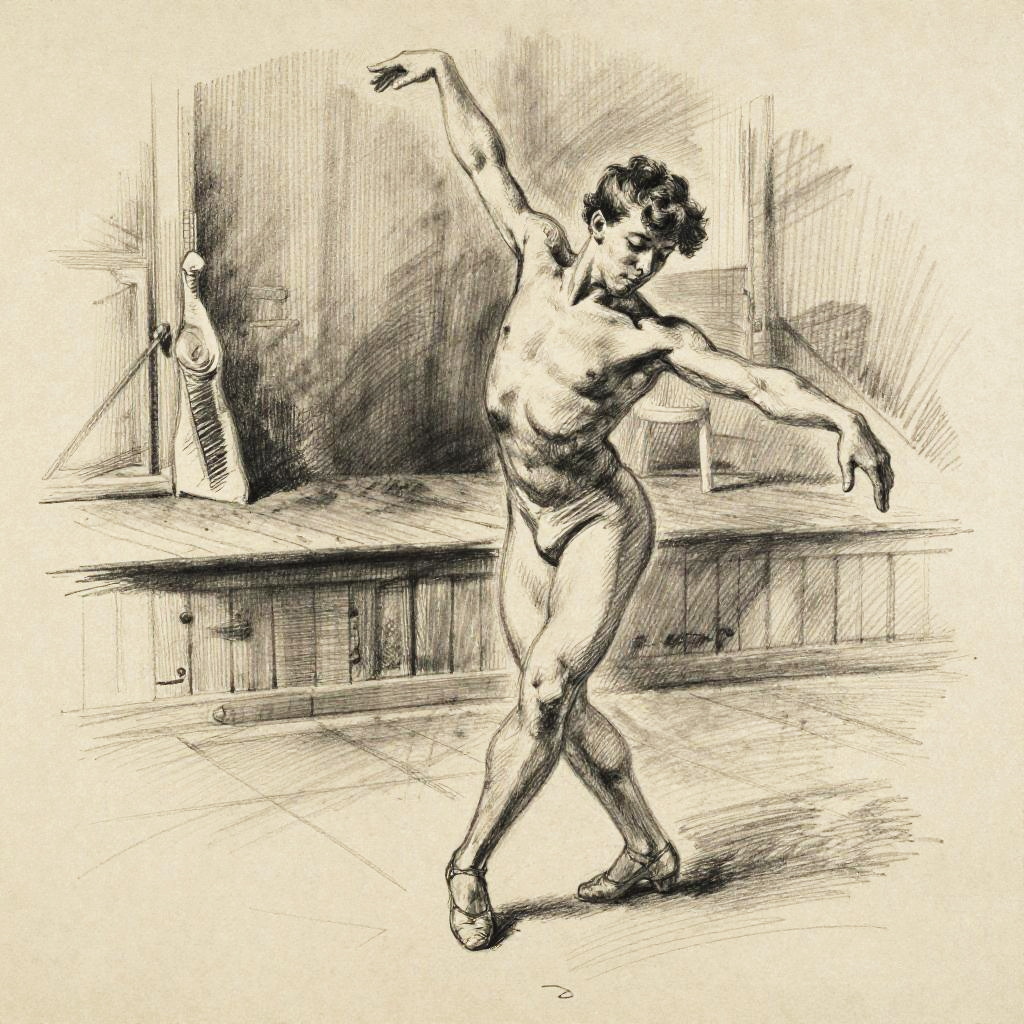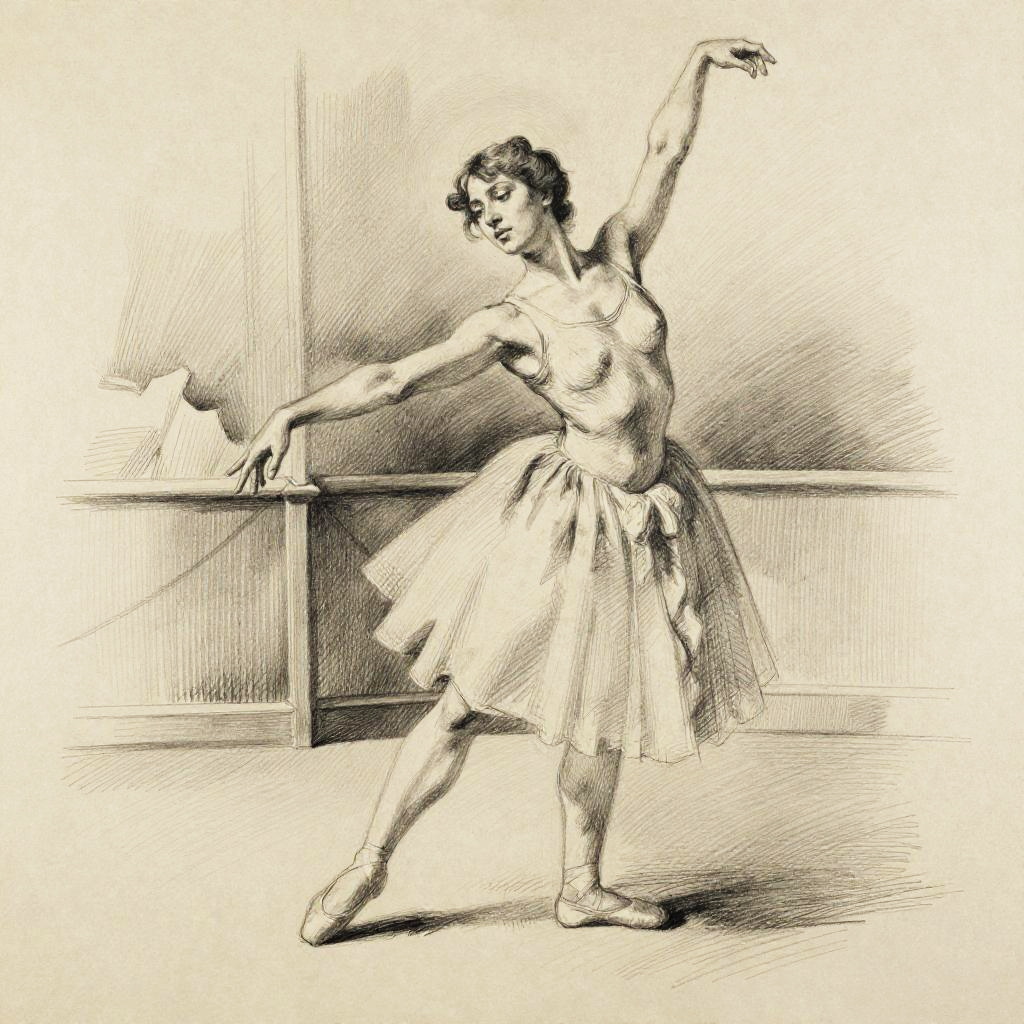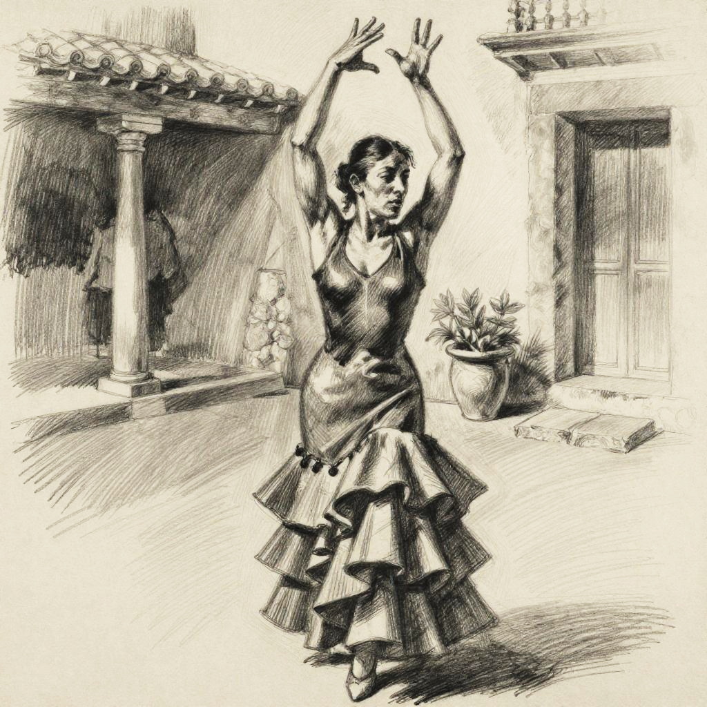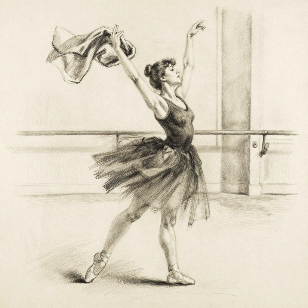 Expressive pencil sketch by Edgar Degas depicting a salsa dancer spinning rapidly, with spiraling lines, vivid shading, and intense motion, in a lively dance club, with a passionate and exhilarating energy, loose yet detailed