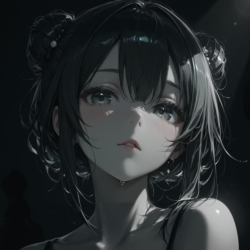 Masterpiece, best quality, 1girl ((pure red background)), black hair, floating hair, blush, looking at viewers, white T-shirt, happy, ((front)), upper body, close-up, (studio light), soft light, dark style, night style, red light