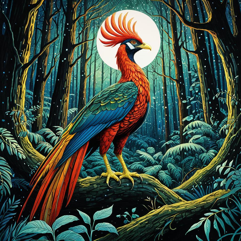 A radiant tropical bird, in the style of Henri Rousseau, inspired by fauvism, jungle vibrancy and exoticism