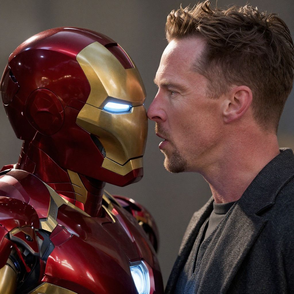 Benedict cumberbatch as iron man, marvel cinematic universe, making out, photo, breathtaking, 8 k resolution, extremely detailed, beautiful, establishing shot, artistic, hyperrealistic, beautiful face, octane render