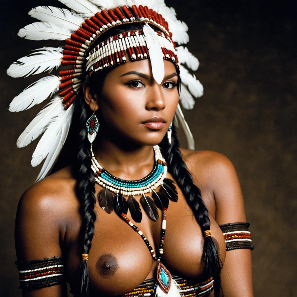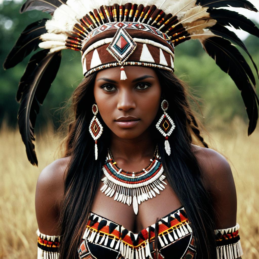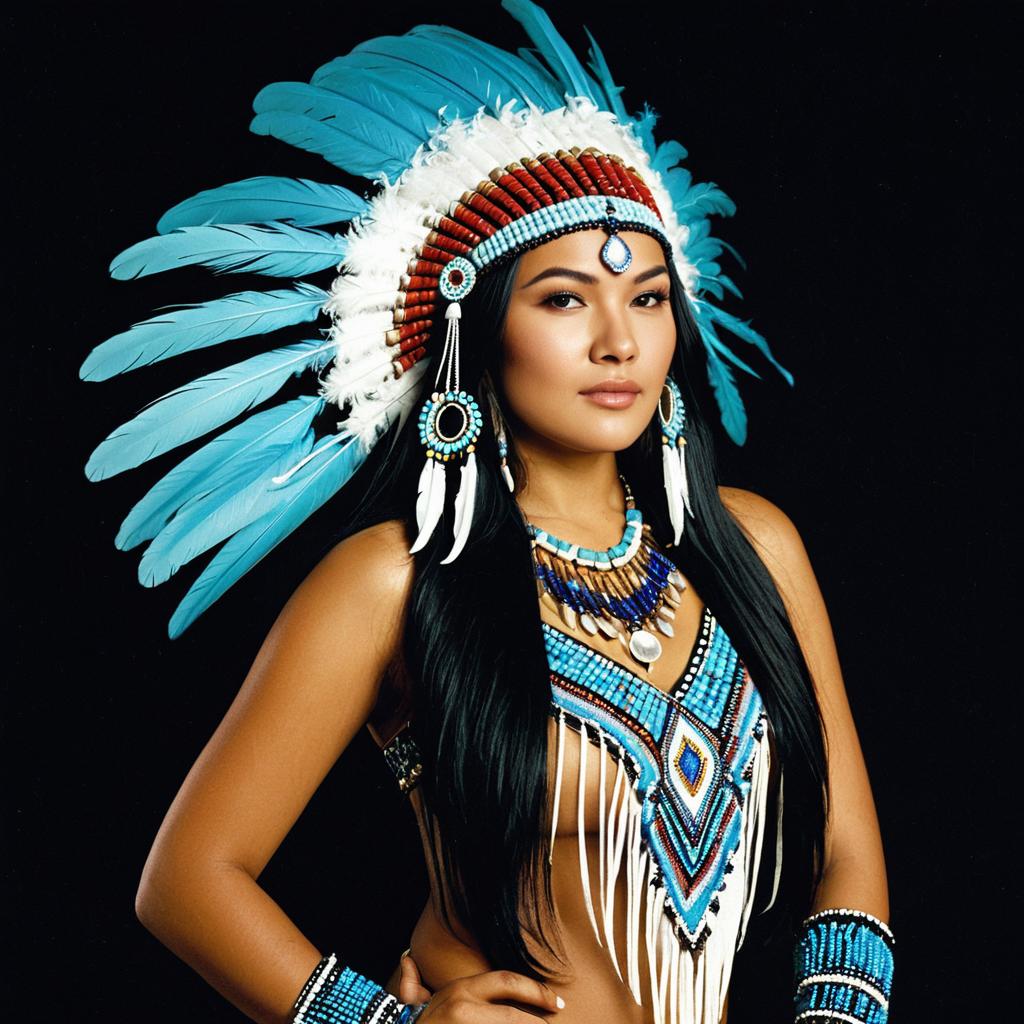 National costume samoa,solo, jewelry, 1girl, black hair, earrings, native american, realistic, flower, hair ornament, long hair, bare shoulders, necklace, bracelet, feathers, hair flower, dress