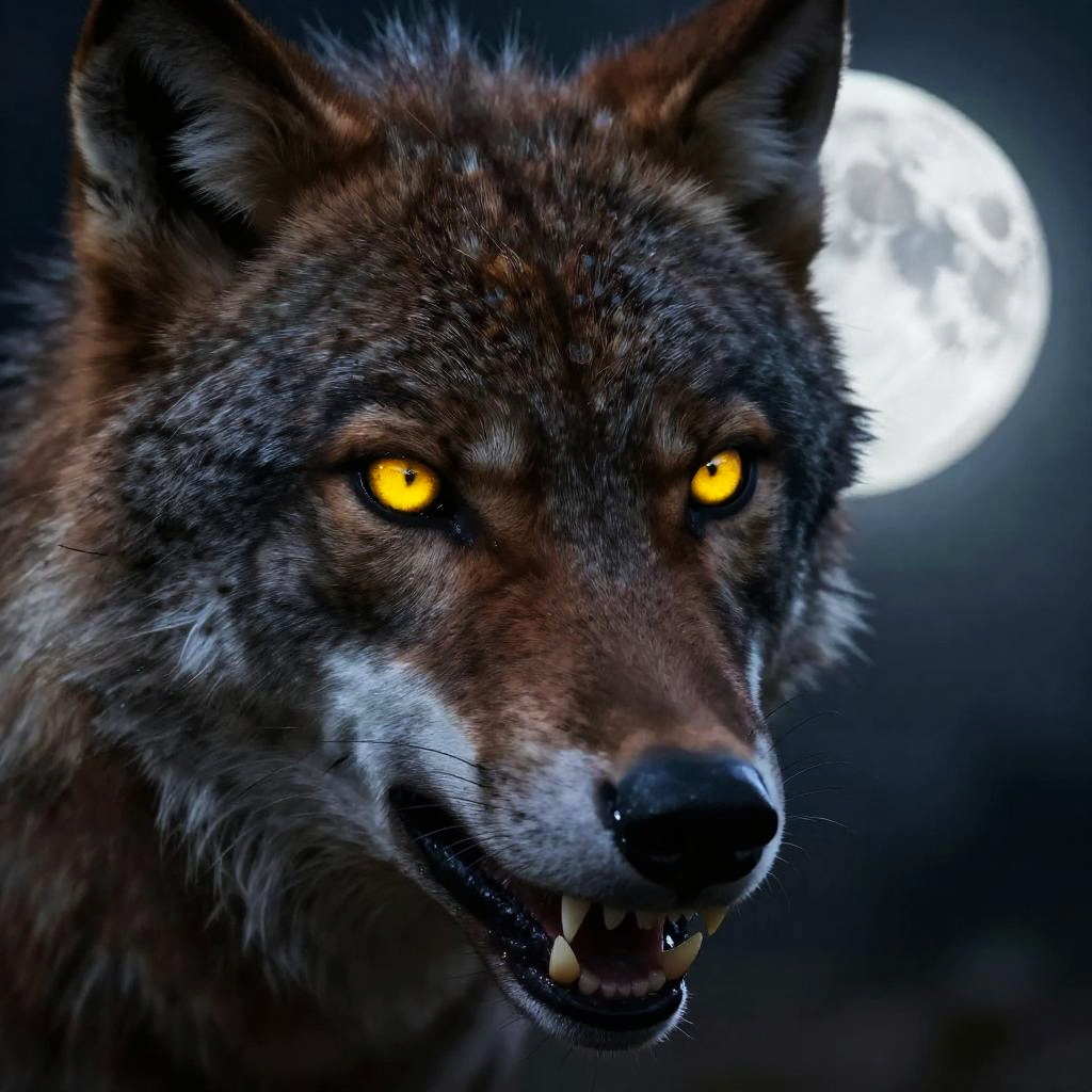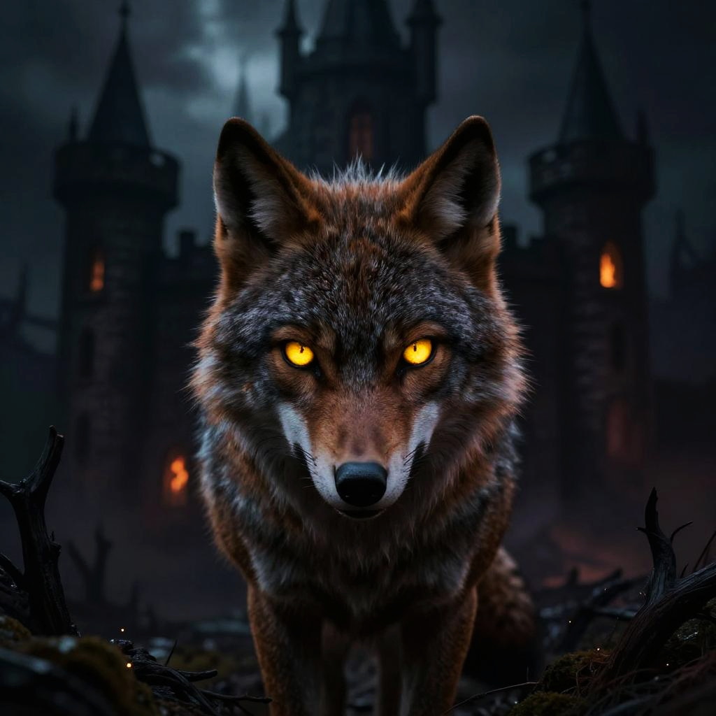 Glowing Werewolf Eyes in Shadows