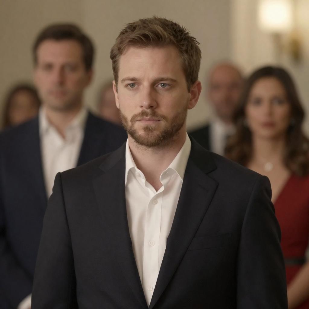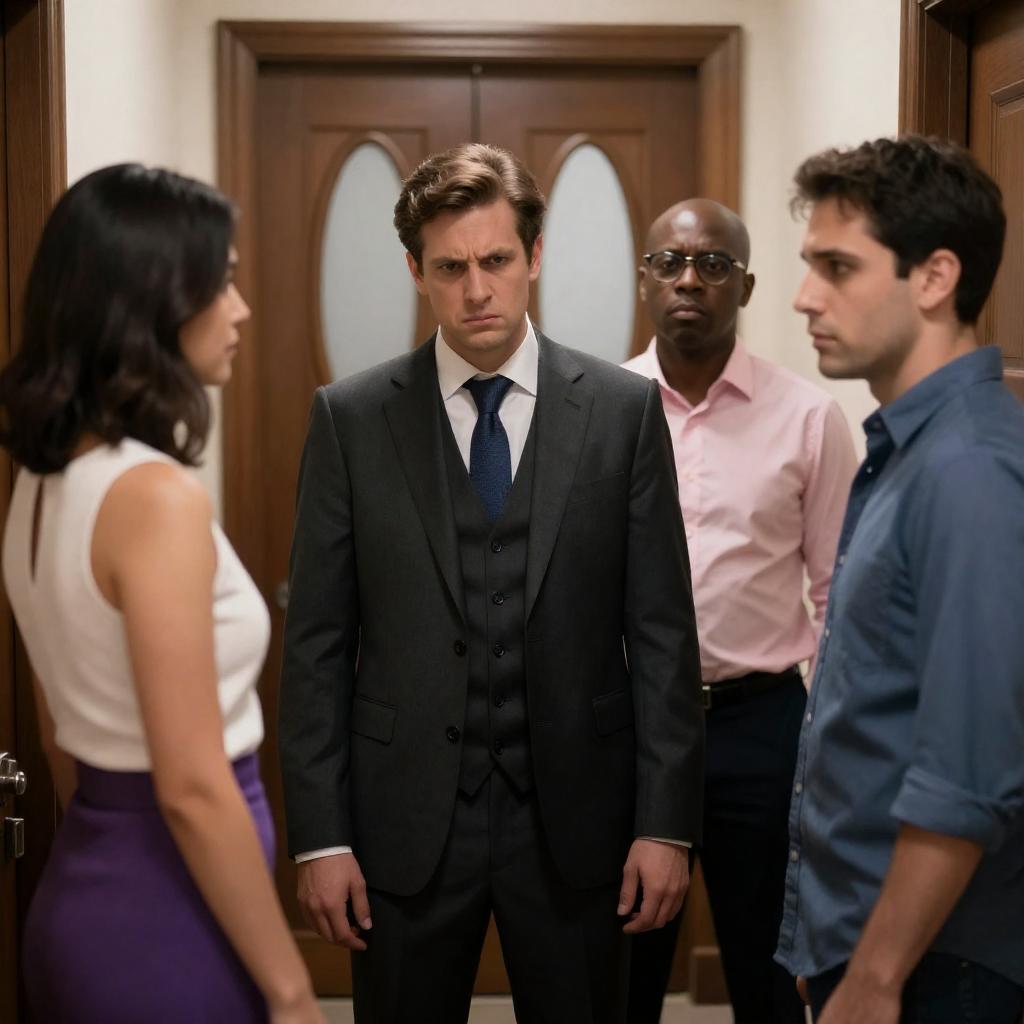 Photograph of two men in suits in a dimly lit room. One man with light brown hair and a gray suit holds a document, wearing white gloves. The other man, with dark skin and a short beard, wearing a dark gray suit and blue striped tie, looks serious. Candles on a shelf in the background. Both men focus on the document.
