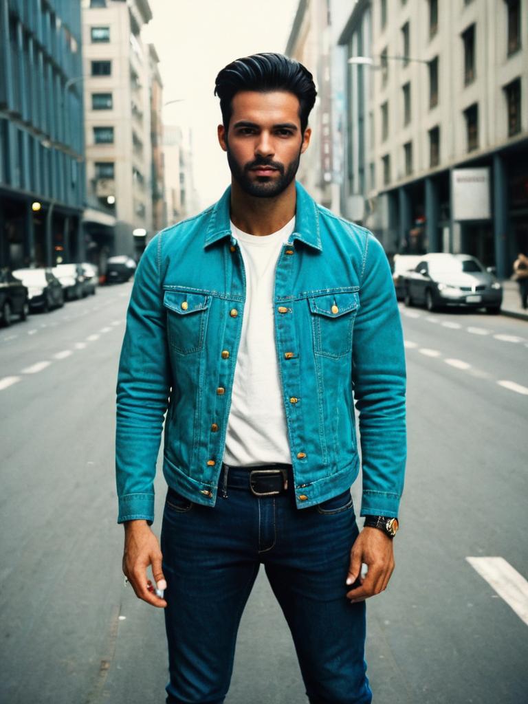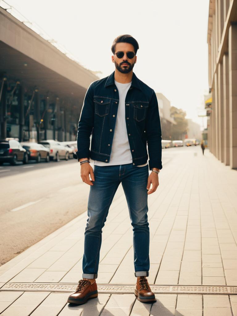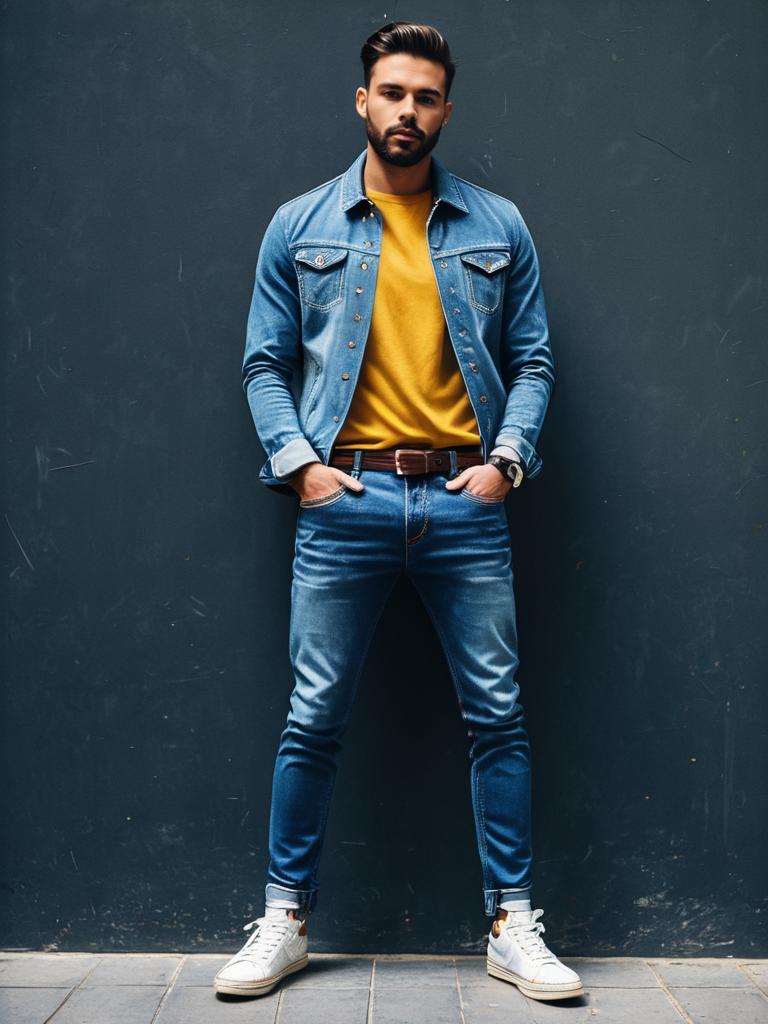 Man in Stylish Jeans Outfit, full-body casual fashion photo --sref 1390