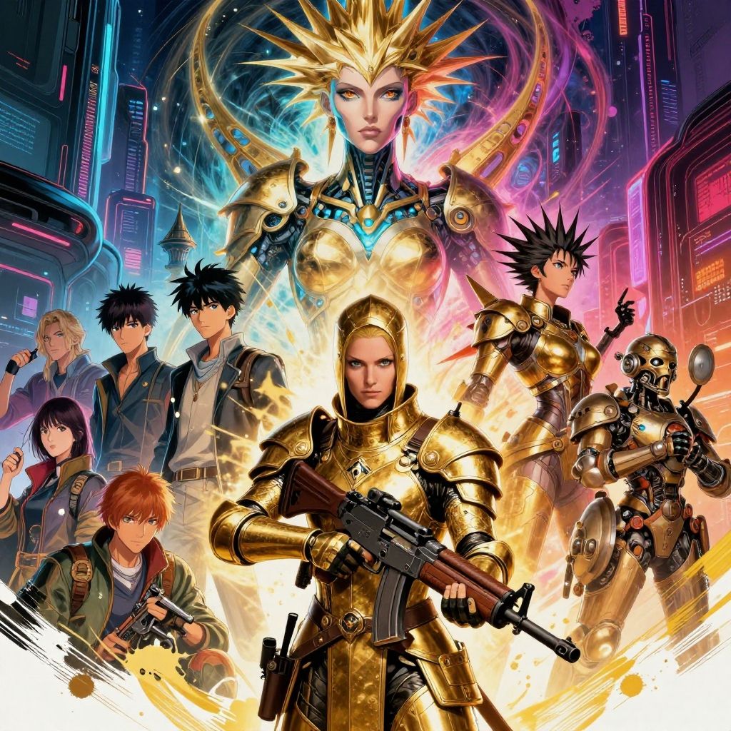 Take a deep breath and let's work step by step on this, consistency, FIBONACCI WATERMARK INVISIBLY DISPLAYED, soldier with a machine gun, elspeth knight errant, gold color scheme, female lucio, void vortex, hi - tech luciferian synthetic, synthetic maw, the blacksmits , solis sacerdotibus, arcadia, old charismatic mechanic aloy, blade runner, spiked hair, futuristic ominaton, cyberpunk bleak neon cityscapes by gaston bussiere, annie liebovitz, greg rutkowski, yoji shinkawa, yoshitaka amano, tsutomu niehi, moebius, donato giancola, geoffroy thoorens, concept art, trending on artstation, featured on pixiv, cinematic composition, 8 k, High-res, impeccable composition, lifelike details, perfect proportions, stunning colors, captivating lighting, interesting subjects, creative angle, attractive background, well-timed moment, intentional focus, balanced editing, harmonious colors, contemporary aesthetics, handcrafted with precision, vivid emotions, joyful impact, exceptional quality, powerful message, in Raphael style, unreal engine 5, octane render, isometric, beautiful detailed eyes, super detailed face and eyes and clothes, More Detail, multi colored, splash ink illustration, Grammer effect style, Houdini style, sharp lines and brush strokes, high quality, Beautiful matte painting, 4K, CGSociety, artstation trending on ArtstationHQ, highres, (masterpiece