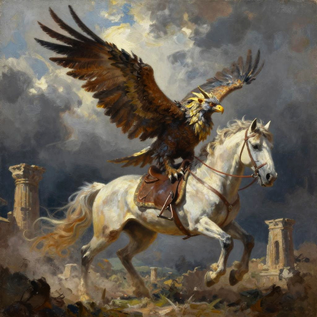 Armored Knight on Horseback at Sunset