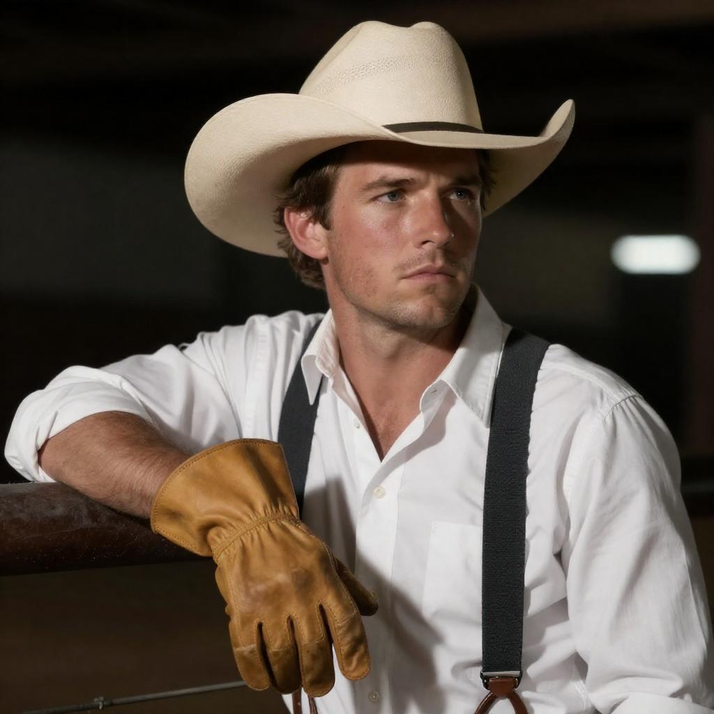 Cowboy Portrait with White Hat and Leather Jacket