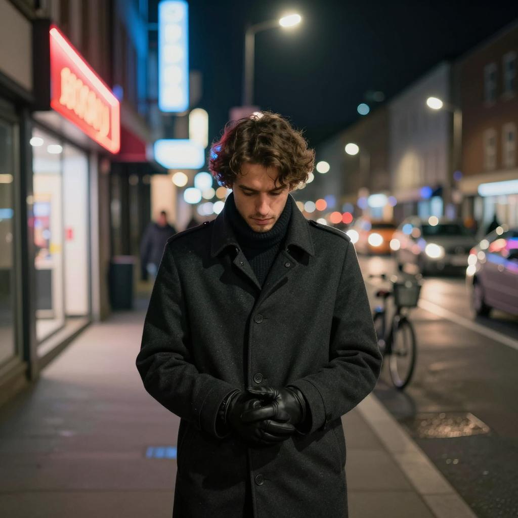 Urban Man in Phone Booth with Neon Lights
