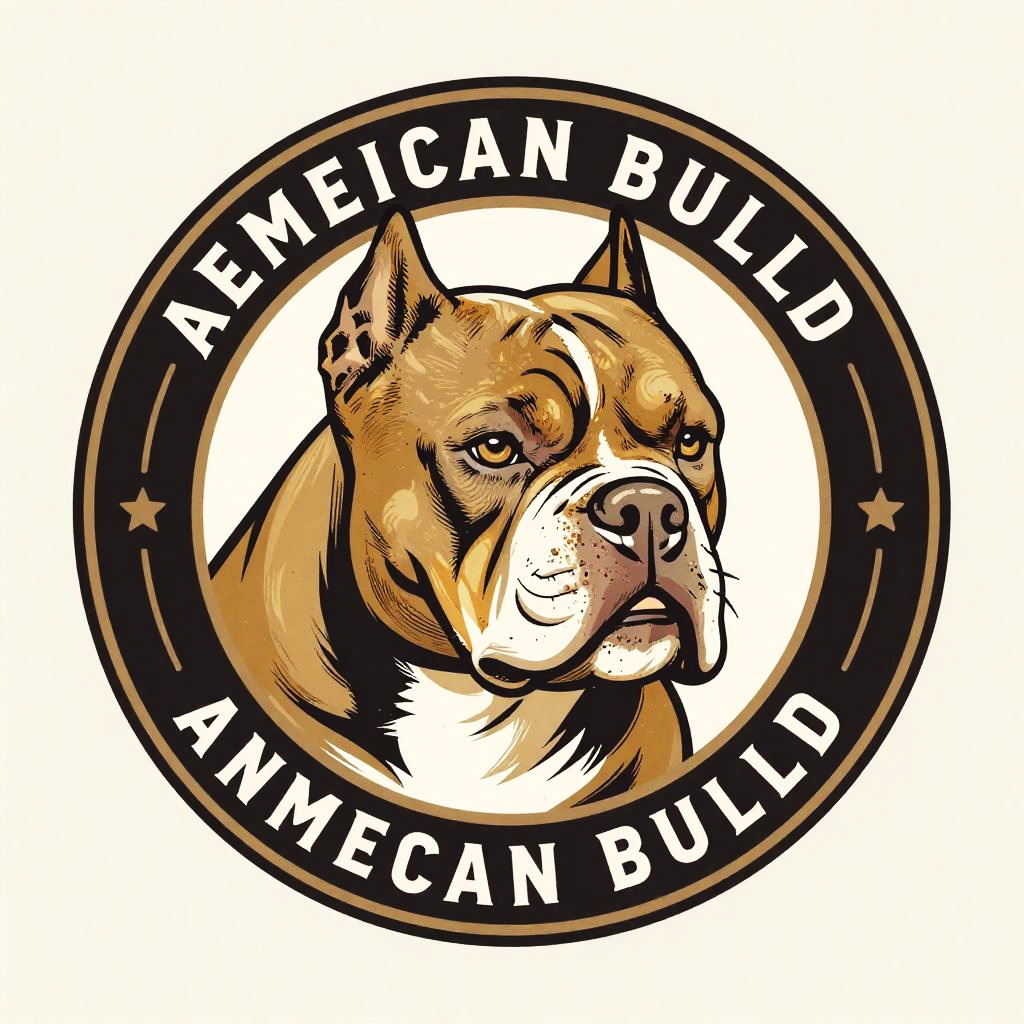 American Bully logo maker design featuring a fierce and muscular American Bully dog silhouette, bold typography, and strong geometric shapes. The color palette includes black, red, and white for high contrast and impact, perfect for apparel branding.