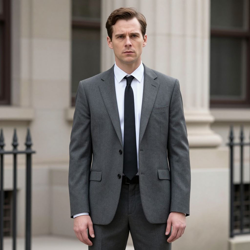 Patrick Bateman Suit Costume, man in a suit standing in front of a building