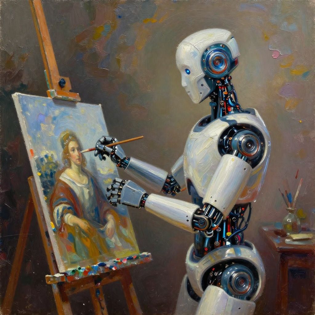 Futuristic Robot Painting Classical Still Life